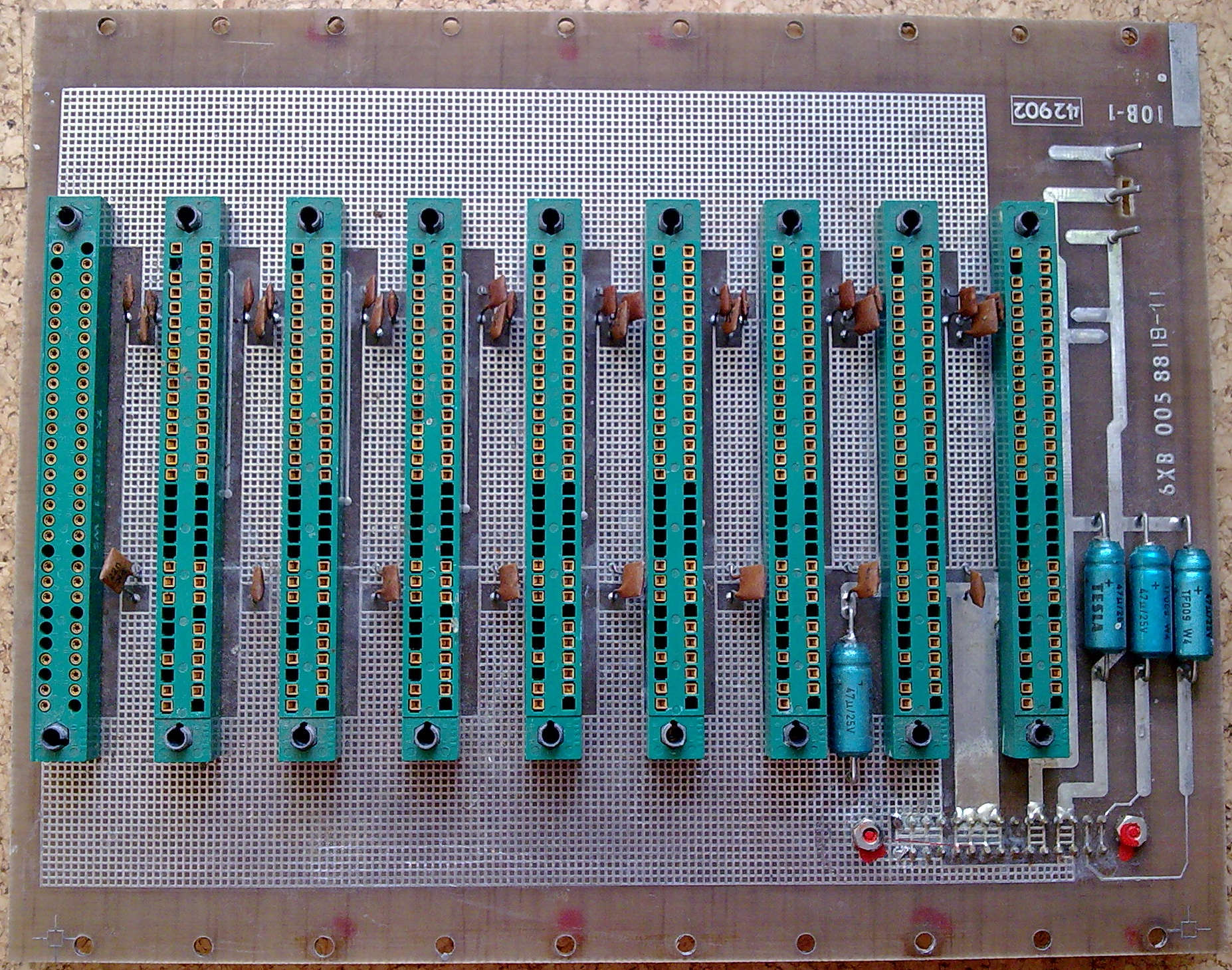 Deska sběrnice IOB-1 jednotky JPN-1 slouží k rozvádění napájecích napětí, datových, adresových, řídicích a přerušovacích signálů k jednotlivým deskám systému, umístěných v jednotce JPN-1.
