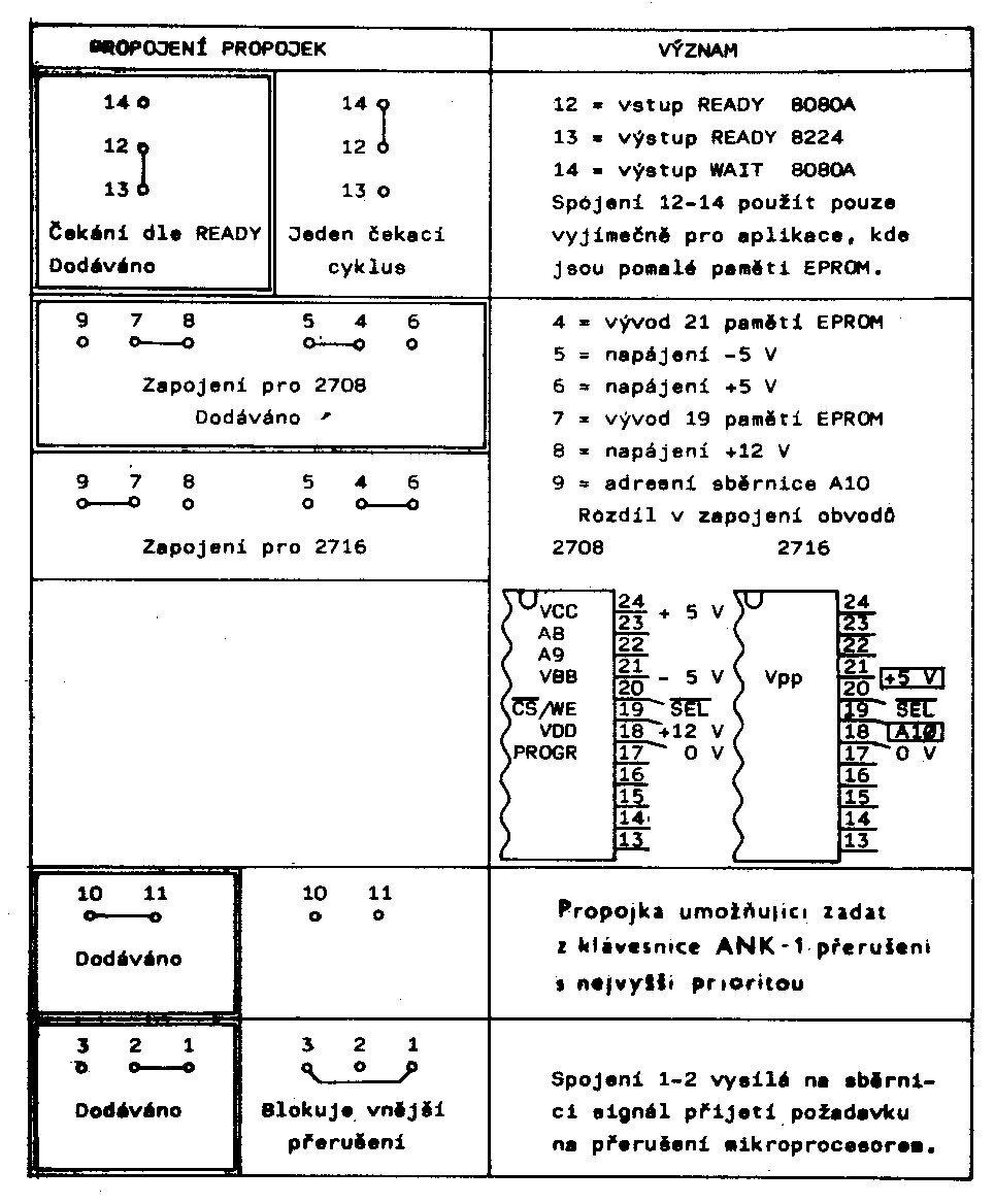 Překontrolujeme zapojení propojek na desce, případně předěláme propojky podle potřeby. Význam a zapojení propojek je uvedeno v příloze XI.