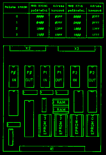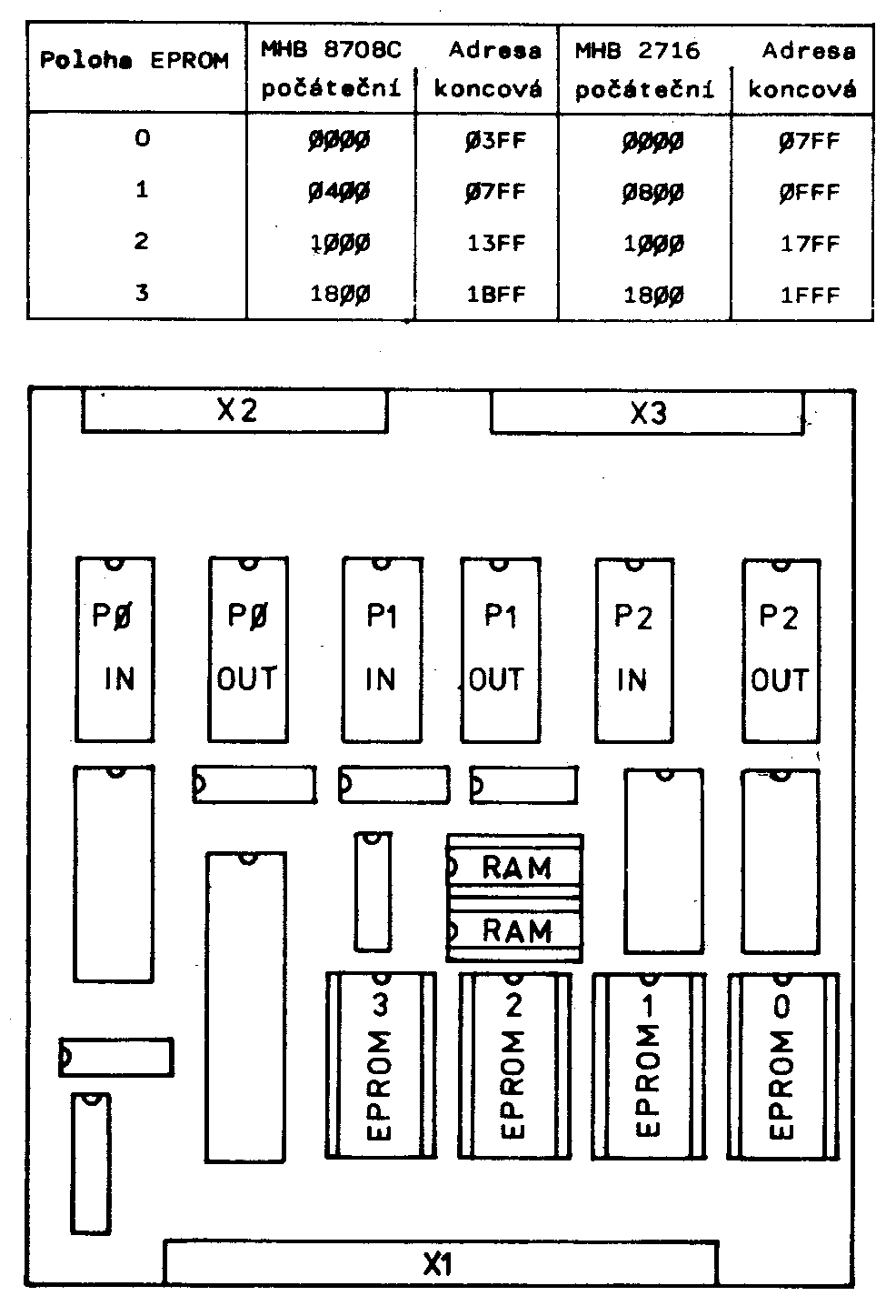 Deska je předzapojena pro paměti EPROM typu MHB 8708C ( 1 K Byte).