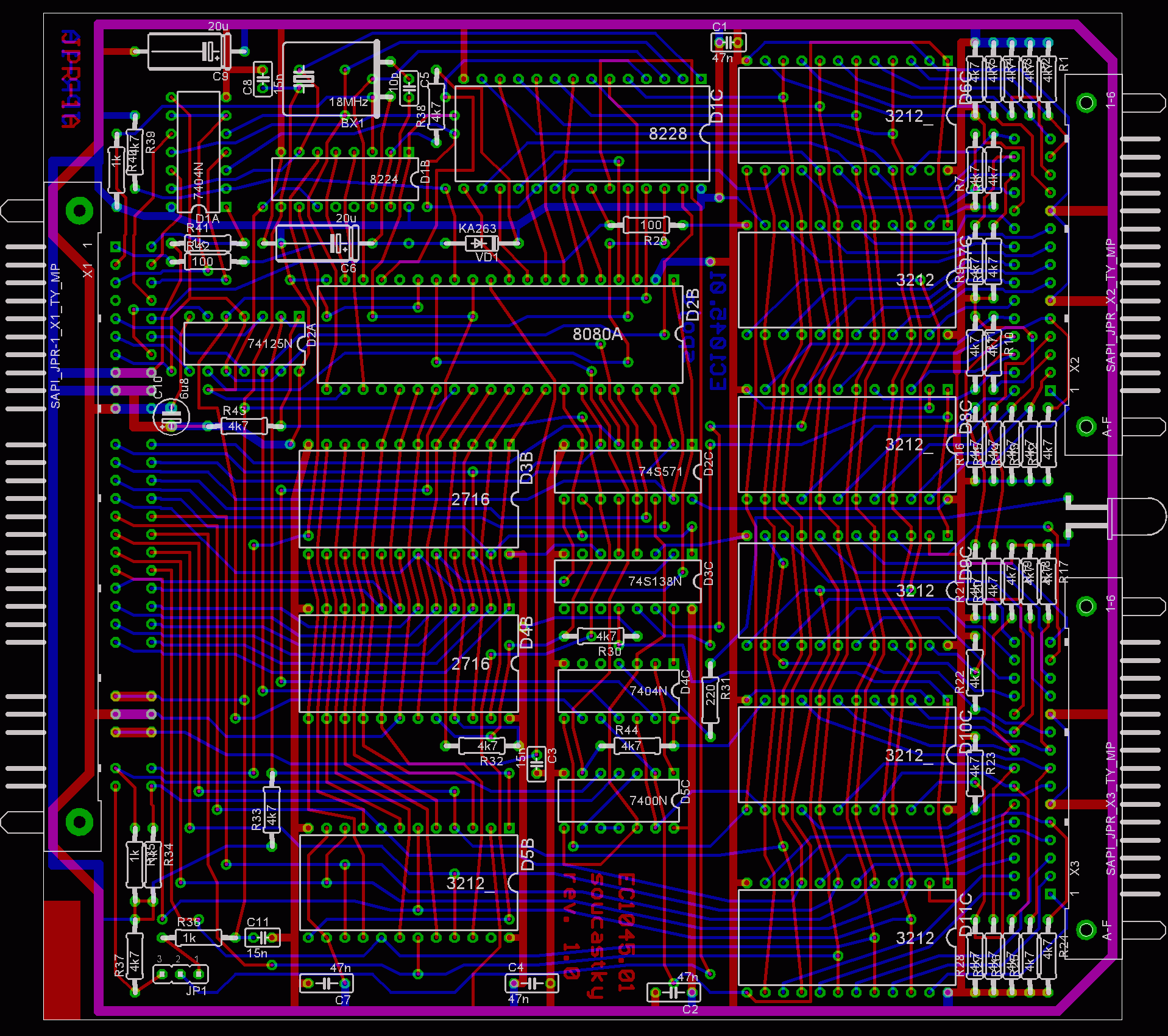 Systémový řadič MH 8228 /D1C/ generuje řídící signály čtení a zápisu pro paměť a přídavná zařízení a signál potvrzení žádosti o přerušení na základě stavového slova z mikroprocesoru 8080A. Zároveň tento obvod slouží jako obousměrný zesilovač datové sběrnice. CPU MHB 8080A /D2B/ řídí činnost systému podle instrukcí čtených z paměti. 16 adresových vodičů mikroprocesoru je vyvedeno na konektor sběrnice.