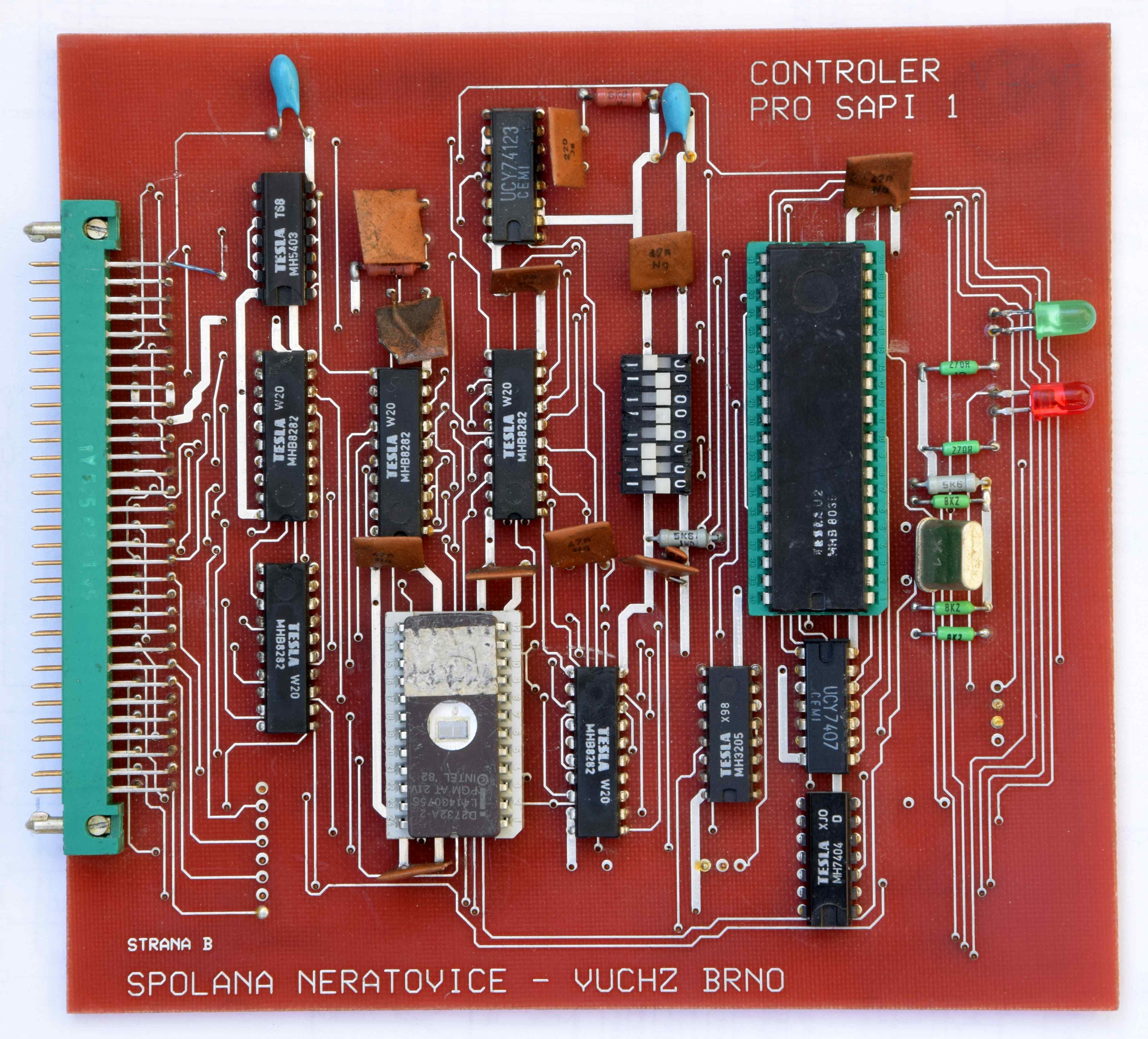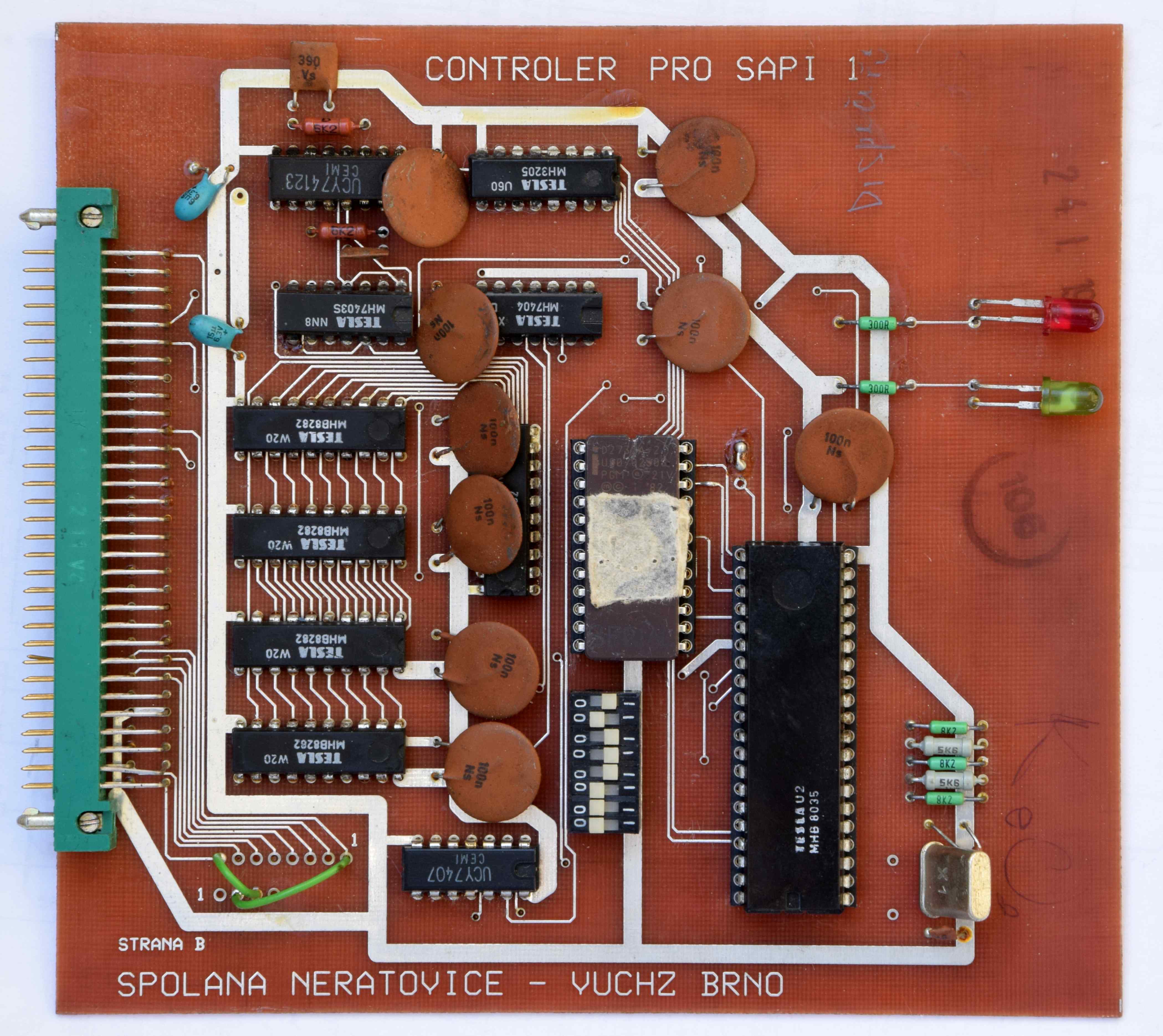 Kontrolér je osazen MCU MHB8035 kdy MCU má přistup jen do jedné poloviny EPROM 2732. Na desce kontroléru jsou obvody pro možnost adresovat v celém rozsahu paměti a i portů v SAPI-1. Účel kontroléru mi není znám. Ale podle zapojení signálu HOLD a HLDA přistupoval kontrolér do SAPI-1 v režimu DMA. Aneb kontrolér nesloužil, jako CPU deska, ale jako inteligentní něco … Kontrolér může i jako velmi jednouchá CPU deska fungovat ale výkon i možnosti budou velice omezené.Kontrolér se dochoval ve dvou provedení DPS kdy starší provedení vypadá jako by bylo vytvořeno AUTOROUTEREM.