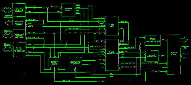 Datové signály DO až D7 systémové sběrnice SAPI-1 jsou obousměrně zesíleny obvodem DD7. Směr přenosu je řízen signálem IOR, výstup se aktivuje součinem signálů IOR a IOW (hradlo DD12B) bud při SEL = L (čtení a zápis do desky MFC-1A) nebo při přenosu DMA.