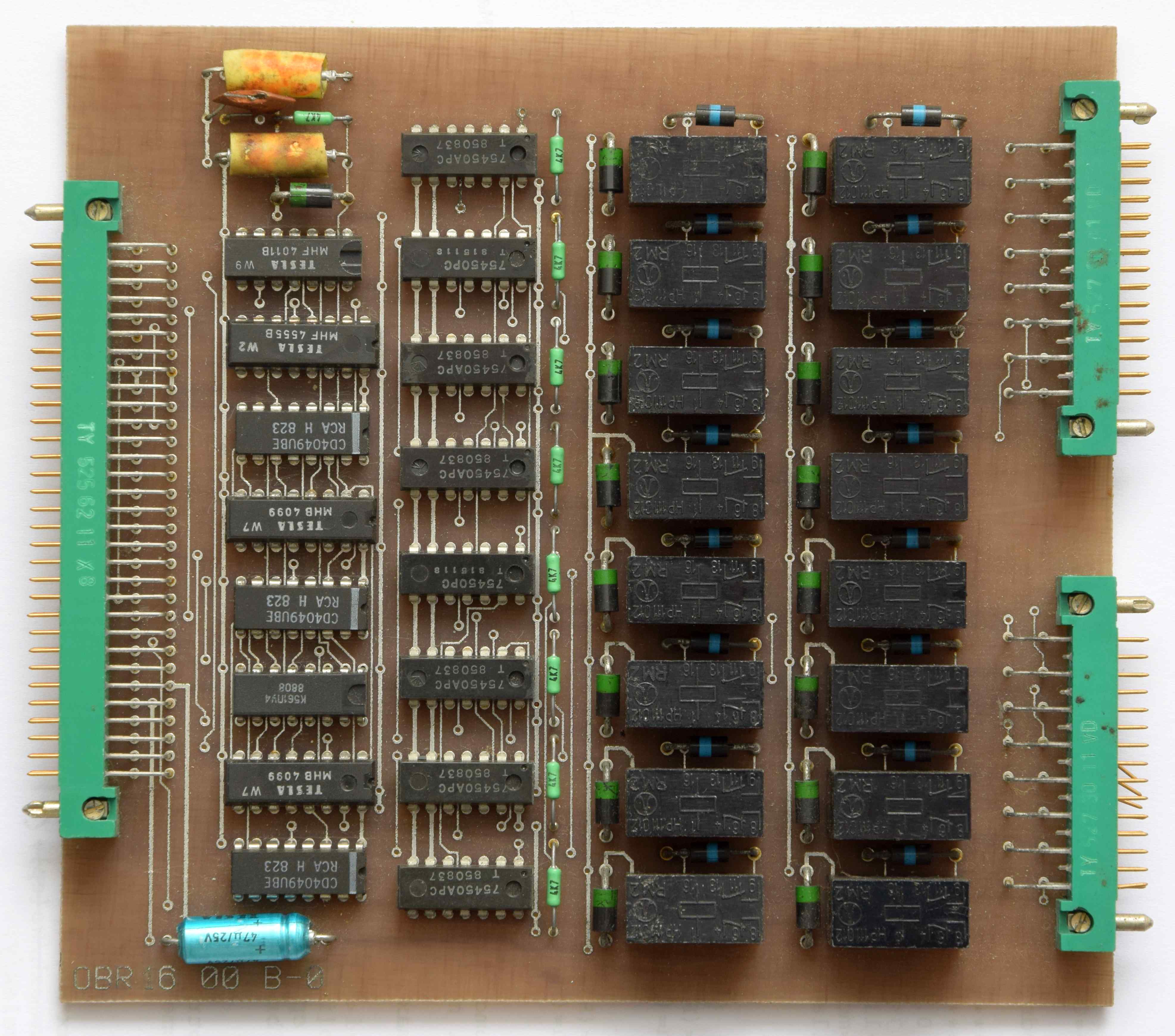 Jde o desku do systému VVS-1 (Vstupně Výstupní Systém) a je postavená na CMOS obvodech. U desek do VVS-1 je v názvu desky zakódovaná základní funkcionalita desky. Zde to znamená O-výstupní digitální deska, B-bitový výstup, R-reléový kontakt. Na desce je celkem 16 relé s přepínacím kontaktem. Správně by měla být deska označena jako OBR-16C aneb to „C“ na konci znamená CMOS a tím se rozlišují desky do systému VVS-1, deska se osazuje do sběrnice VVB-1C v jednotce JVV-1C.