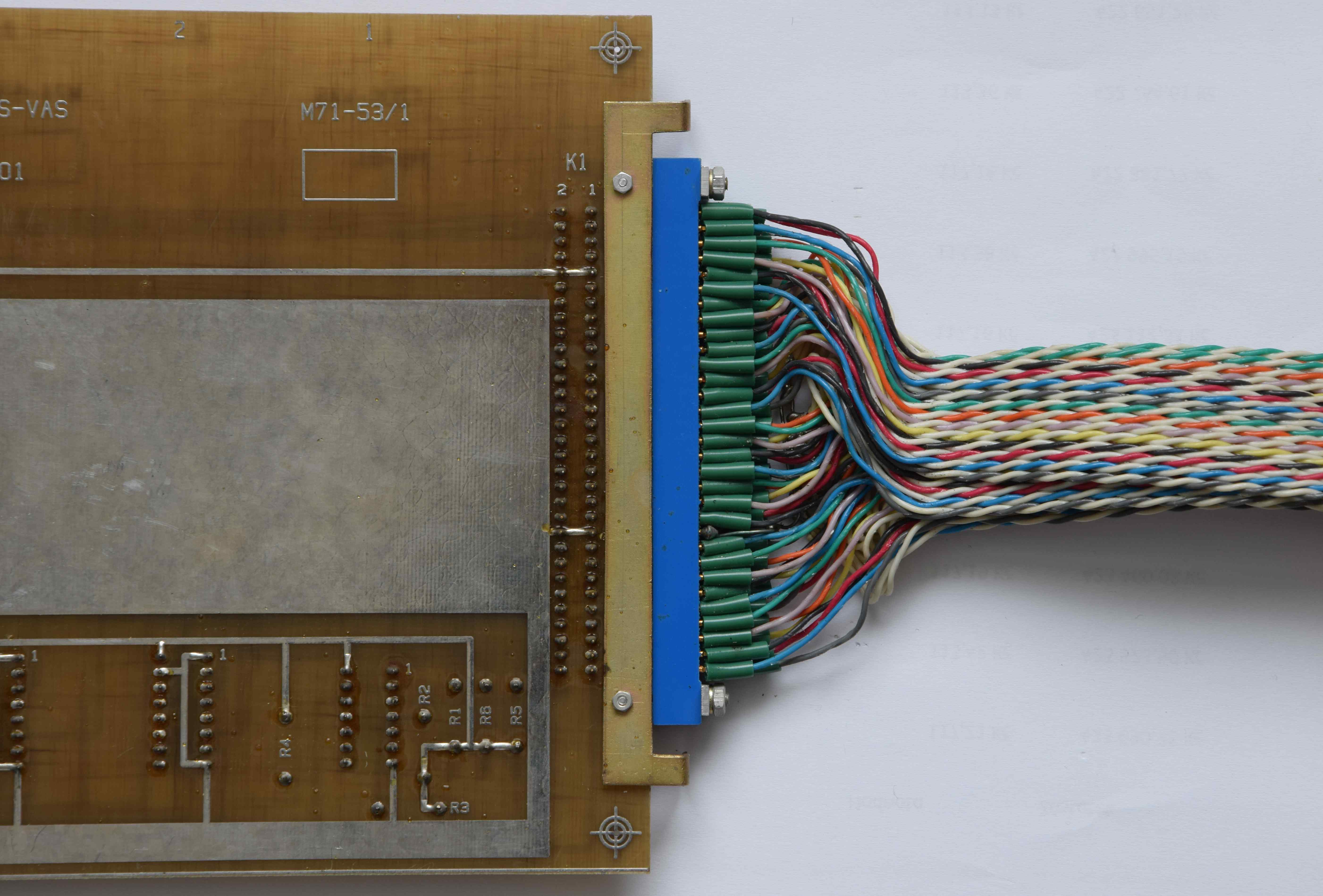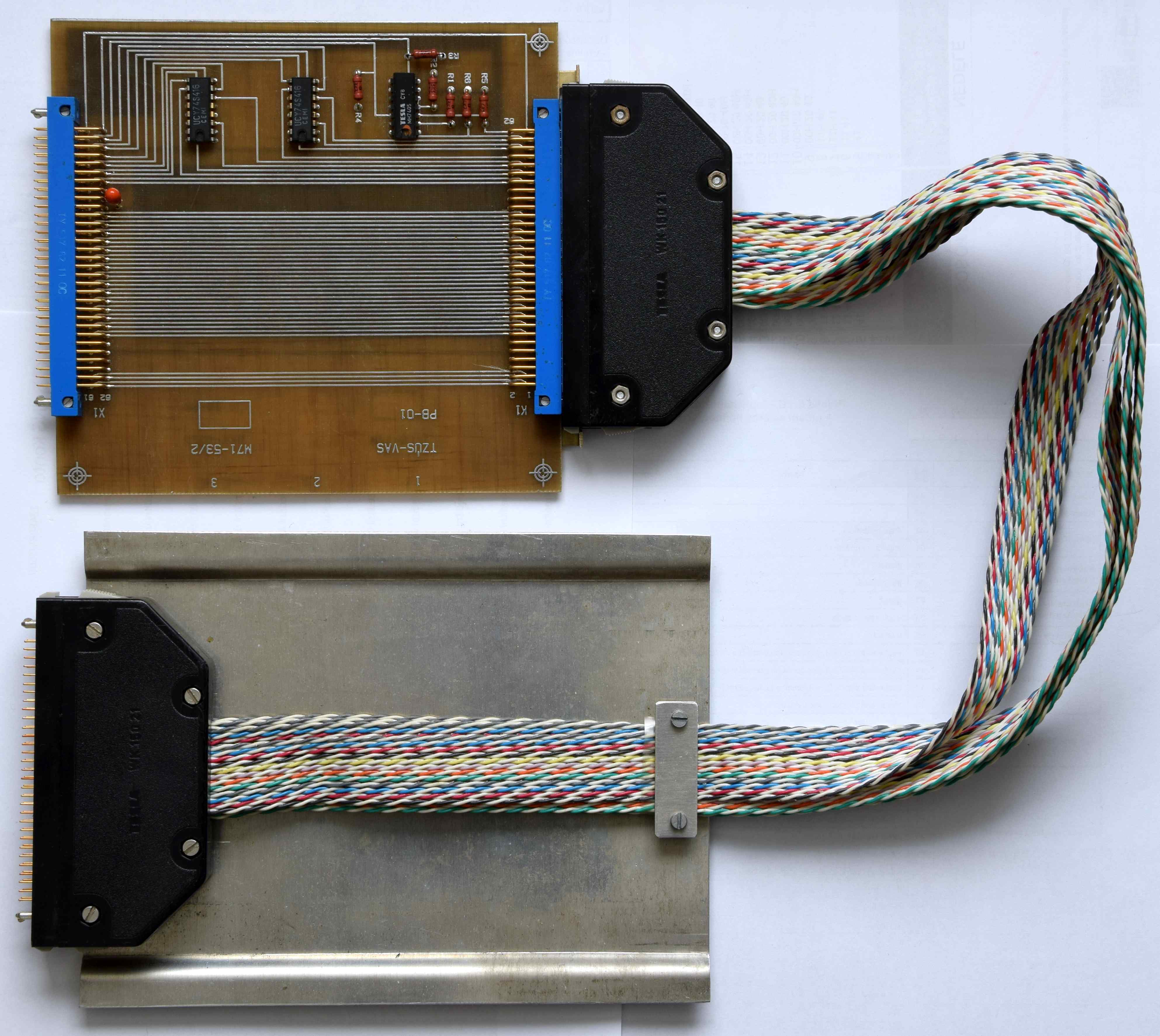 Propojovací kabel je řešen pomocí plochého kabelu (3x NPHA 2x0.05x16 a 1x NPHA 2x0.05x12) s kroucenými páry kdy jeden vodič z páru nese signál a druhy je připojen na 0V aneb slouží jako stínění. Pro usnadnění zasunutí konektoru a také k fixaci konektoru v rozšiřující jednotce je kabel uchycen na pomocném plechu nahrazující DPS.