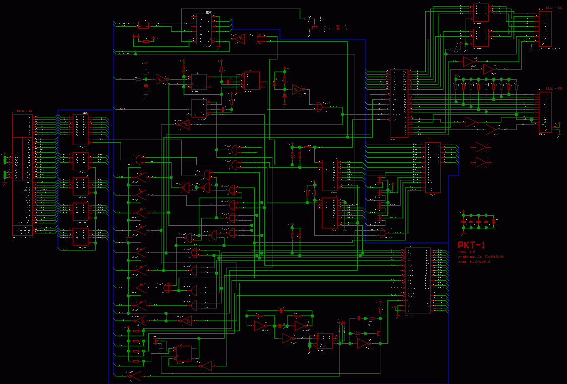 Signály adresové sběrnice mikroprocesoru jsou na výstupu z desky PKT-1 posíleny obvody DD3 a DD5, signály datové sběrnice jsou obousměrně posíleny obvodem DD4. Směr přenosu dat je řízen signálem DTR (aktivní při čtení).