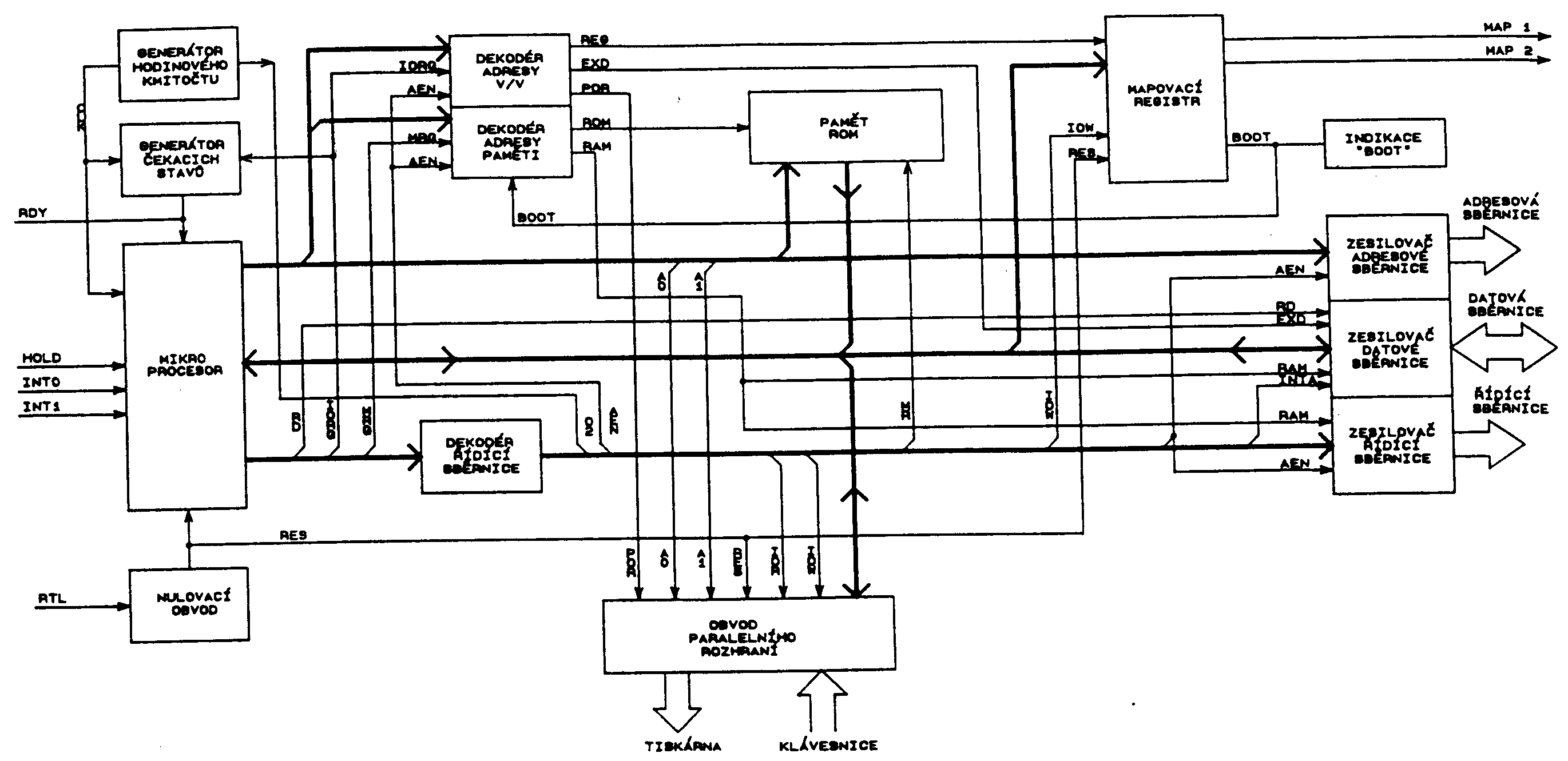 Signály řídicí sběrnice MR, MW, IOR, IOW, INTA, M1, REF, RES jsou posíleny třístavovými hradly DD1, DD2. Datová a adresová sběrnice a signály MR, MW, IOR, IOW mohou být uvedeny do 3. stavu aktivací signálu AEN, signál MR je navíc blokován při čtení vnitřní ROM.