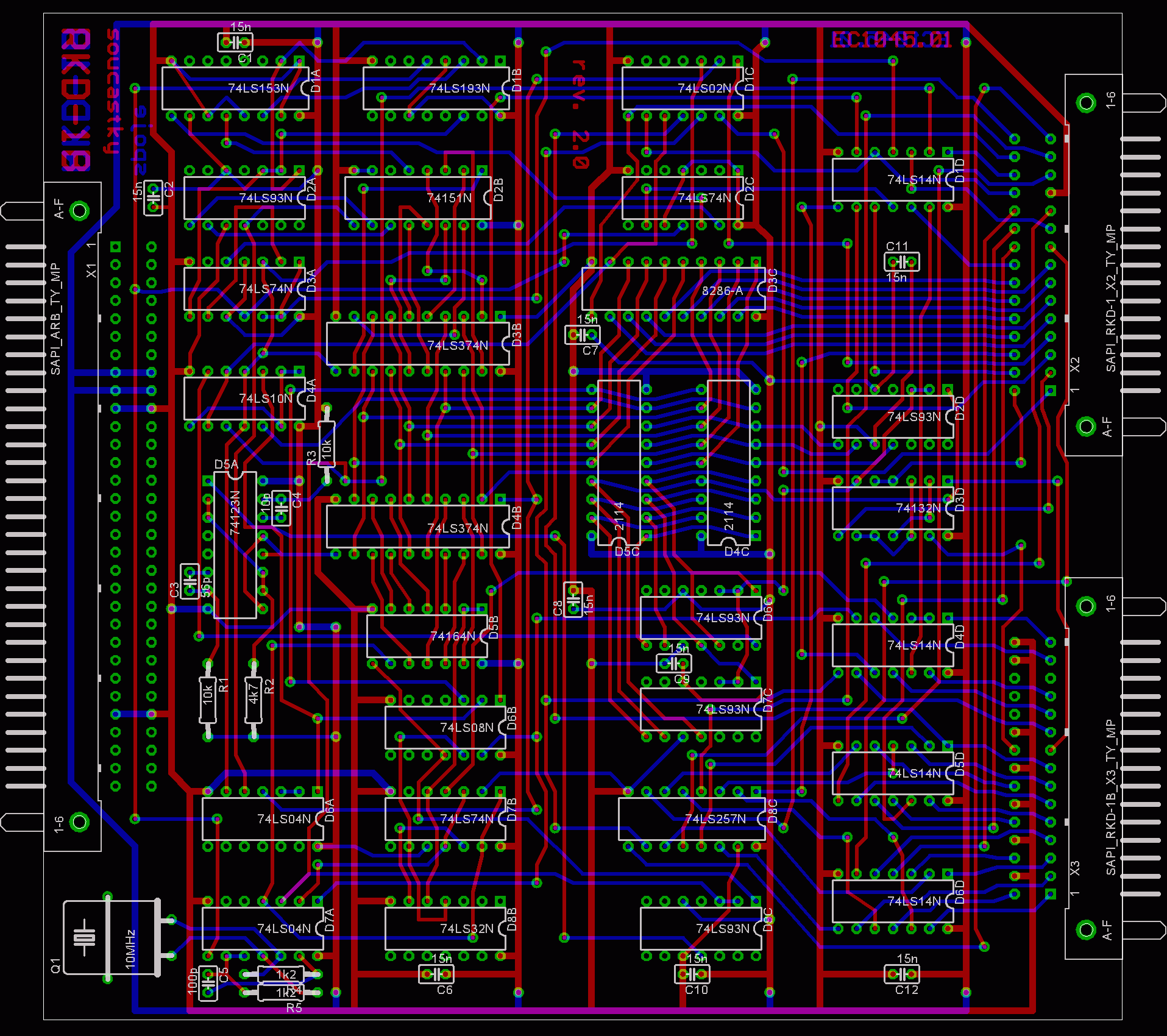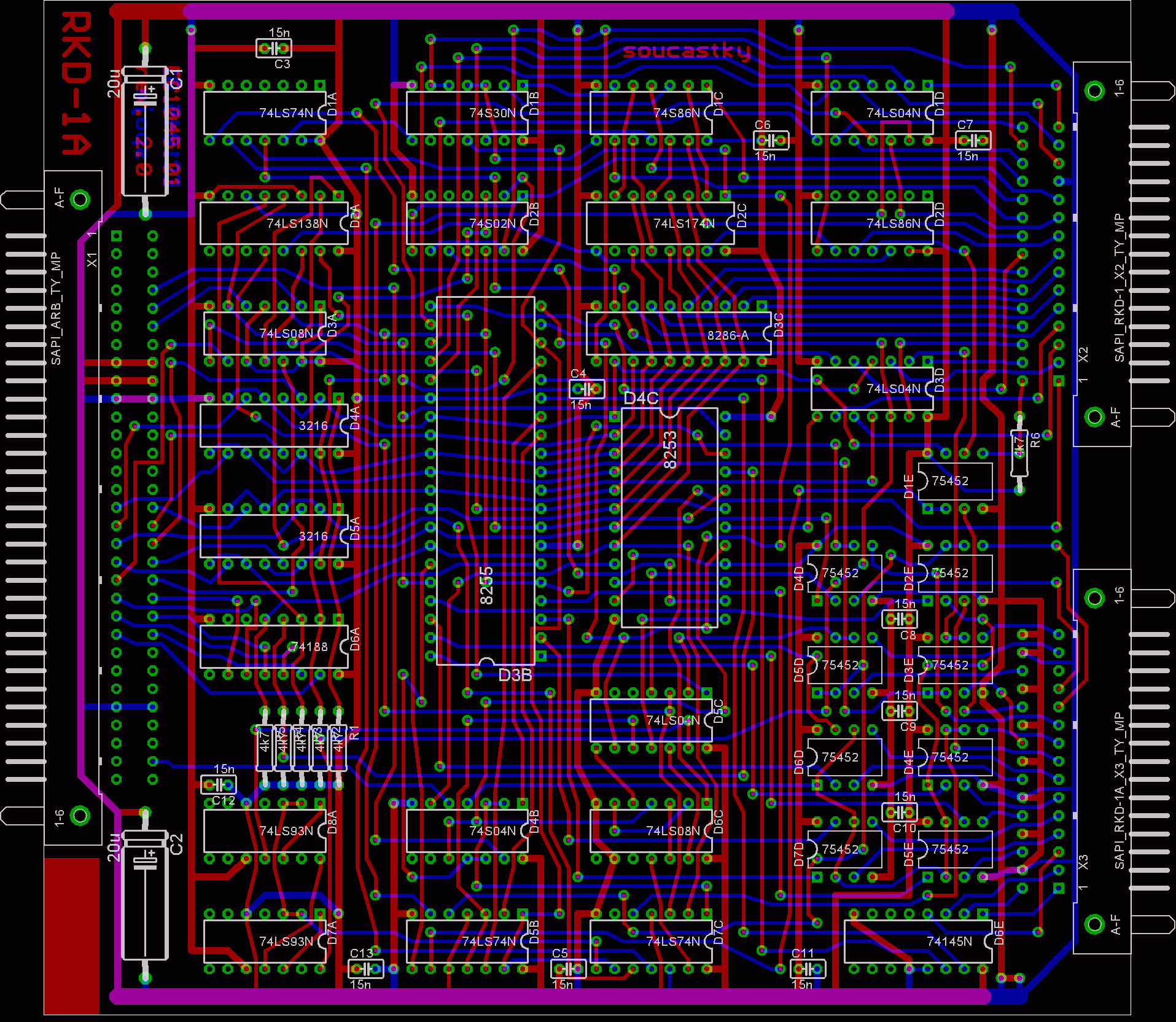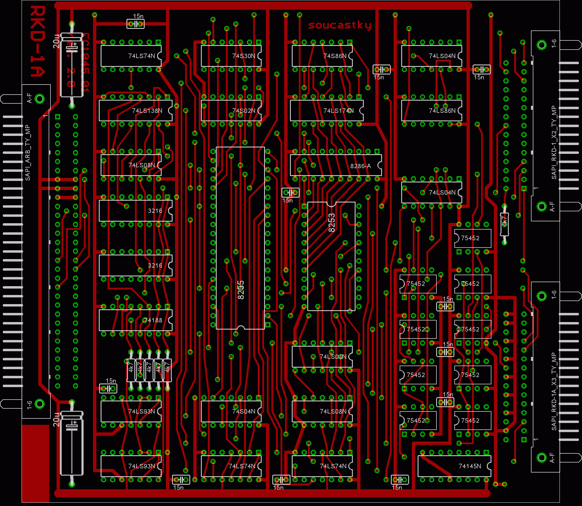 Jak je vidět signály z desky RKD-1A jsou pouze výstupní, Je to proto, že konektory na obou deskách /X2/ jsou zapojeny tak, že mají stejně obsazené špičky konektorů jako je tomu u paměti CM 5403 se Zbrojovky Brno. Pro výrobu kabelů pak stačí udělat kabaly 1:1 a nebo použít přímo kabely, které jsou s pamětí dodávány.