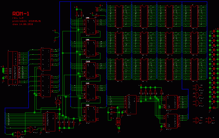 Adresa paměti EPROM od které je požadováno čtení je paralelně naplněná do 15-, resp.16-, resp.17-bitového čítače s předvolbou D4B, D5B, D8B, D9B a D10B typu 74193 (K555IE7). Tento obsah představuje adresu paměti na desce ROM-1, od které začne čtení dat. Další přenos dat řídí procesor JPR-1 tak, že počet přenesených bytů je dán počtem čtení z adresy desky ROM-1. Při čtení z desky se totiž na základě signálu IOR a příslušné adresy desky inkrementuje o 1 obsah čítače a tedy i adresa paměti EPROM. Propojkou a přepínačem DIL na desce je možno nastavit jaký typ pamětí bude na desce osazen. Na základě této informace jsou vedené jednotlivě výběrové signály pro paměti EPROM s krokem 2 KB, resp. 4 KB, resp. 8 KB. Dekódování těchto signálů je řešeno pamětí PROM D3B (MH 74S287) a dekodéry D1B a D2B typu 74LS138 (K555ID7). Jako vstupní a výstupní oddělovač dat jsou použité 2 obvody D6B a D7E typu 3216. Adresní dekodér desky je tvořen pamětí PROM D3A (MH 74S2S7) .