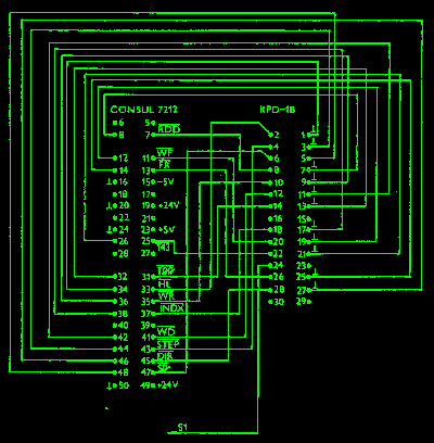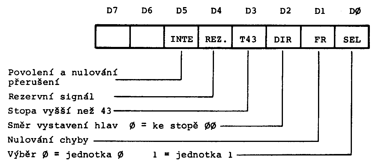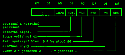 Obdobným způsobem je po zápisu do registru krok motoru nejprve generován impuls STEP způsobující jeden krok krokového motoru v diskové jednotce /obvod D4C/5, D7D/4/ a zároveň spouštějící monostabilní obvod D4C/4 nastavený na povolenou periodu krokování motoru. Teprve po uplynutí této doby vznikne signál STR /STEP READY/ informující o možnosti provést další krok motoru.