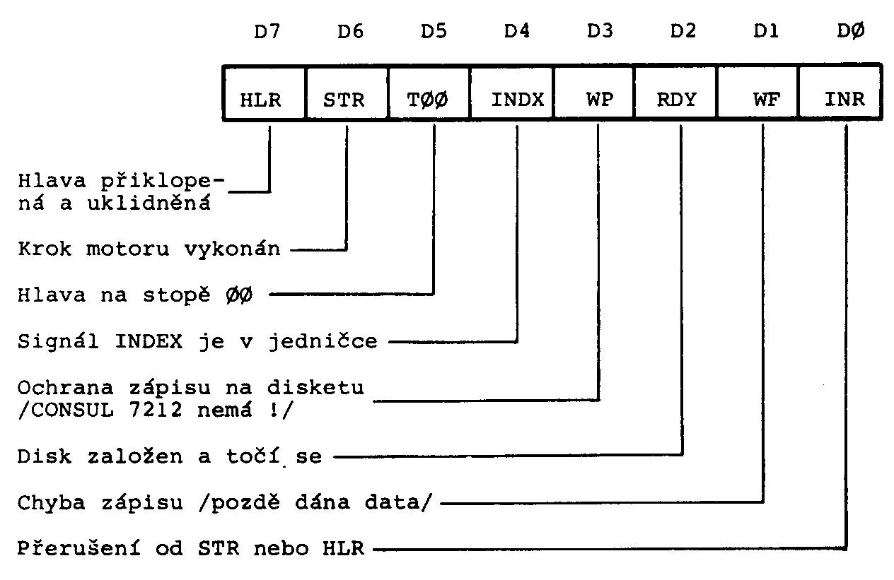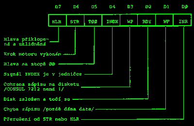 Stav disku a obvodů řízení mechaniky lze zajistit čtením stavového registru mechaniky /obr.2/.