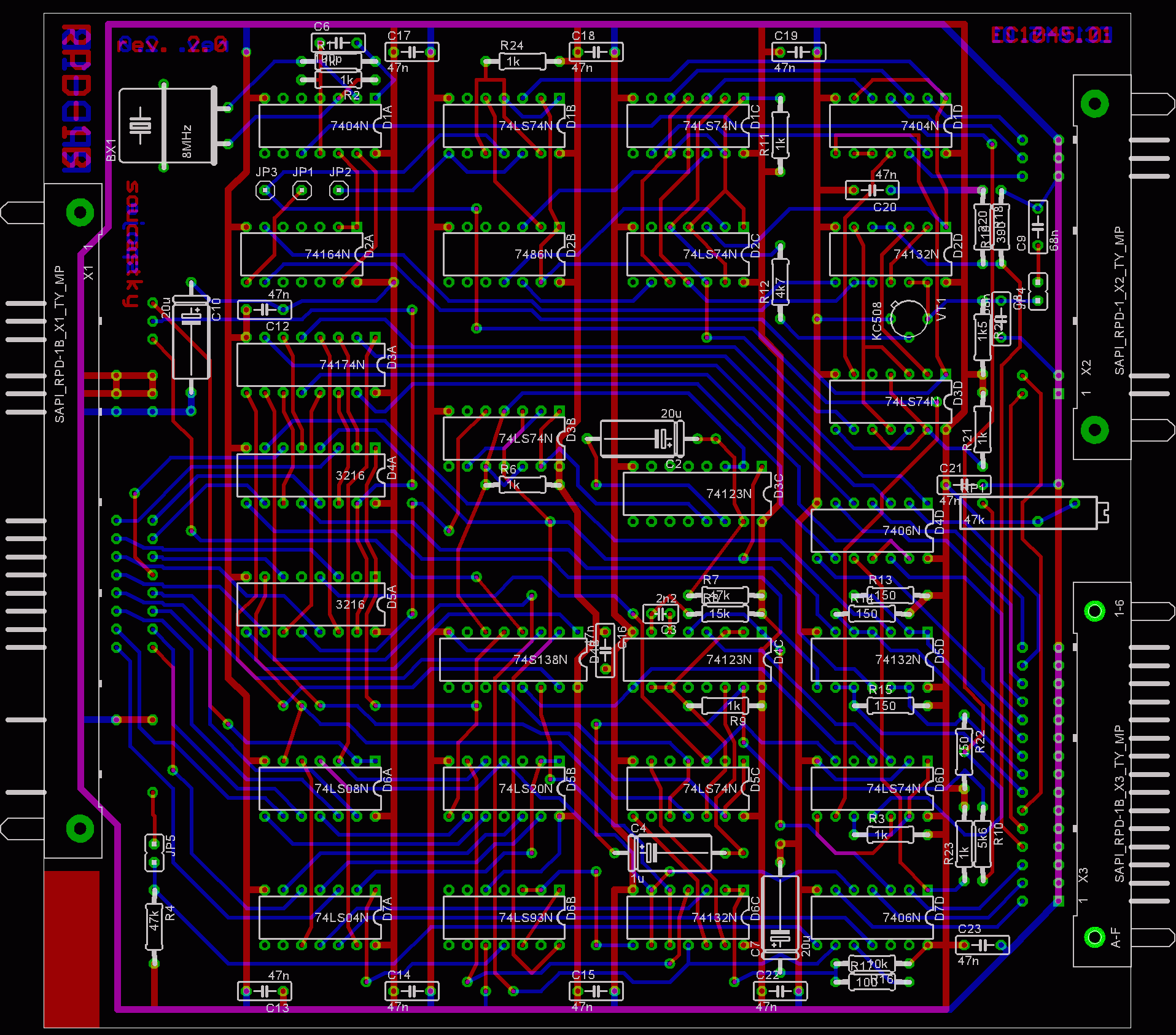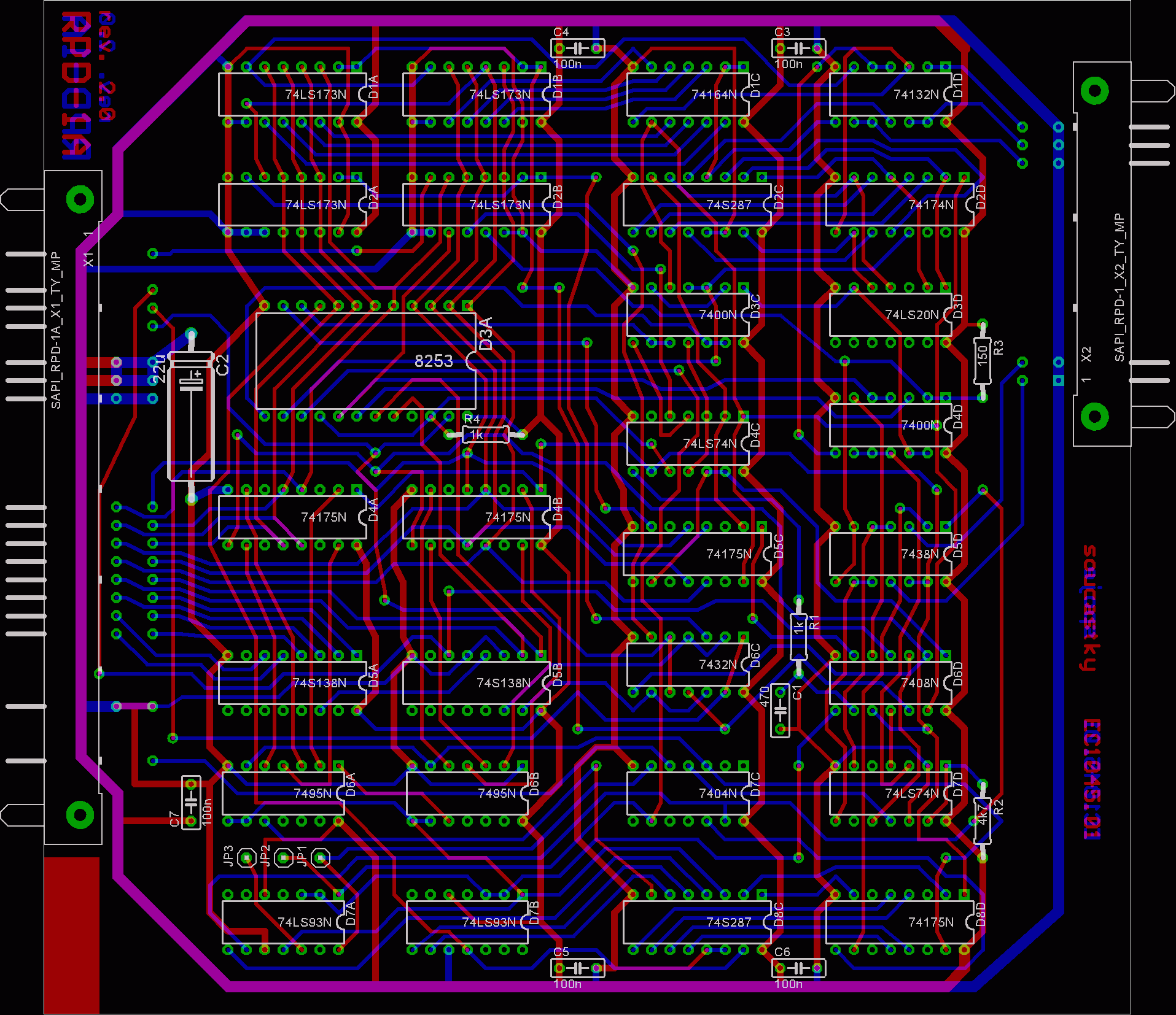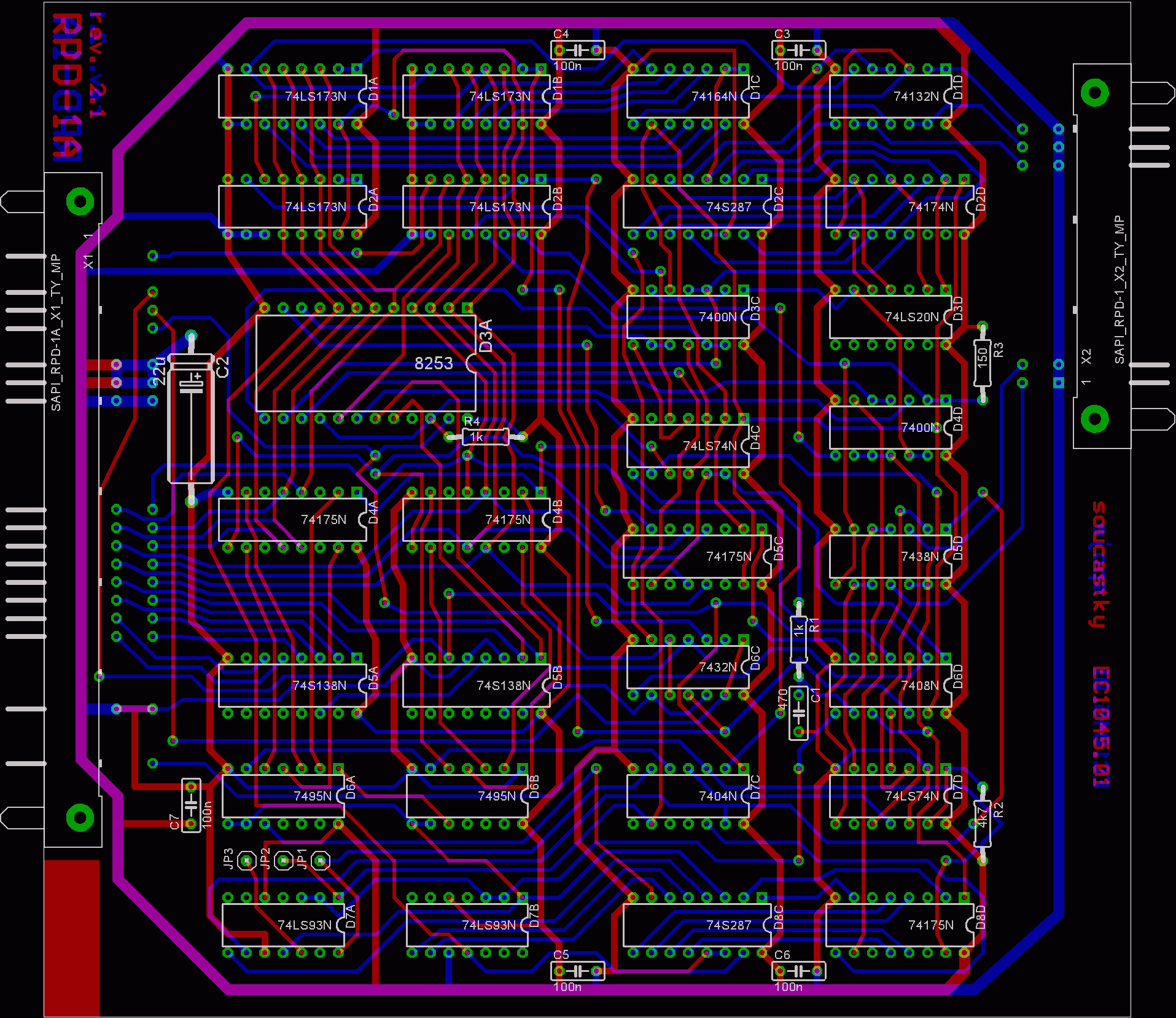 Deska RPD-1A tvoří datový interface mezi sériovou informací přicházející z disku a paralelní sběrnicí počítače. Rovněž tato deska je rozdělena do několika částí