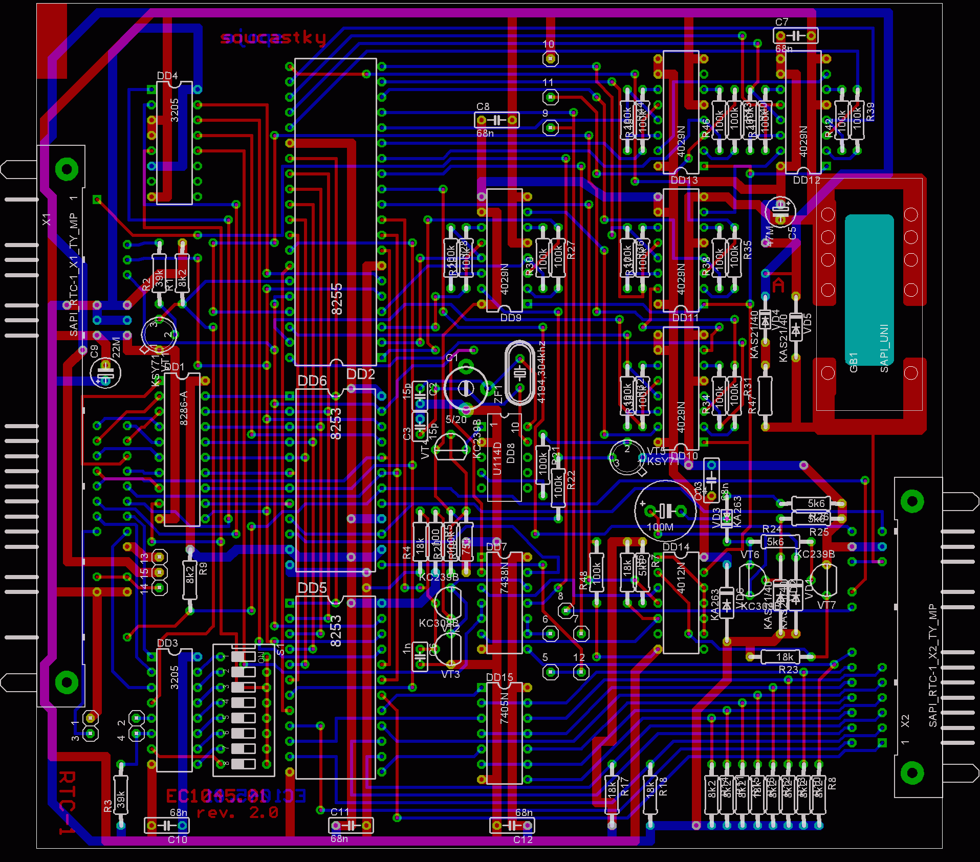 Deska RTC slouží především pro práci v systémech reálného času. Obsahuje dvacetibitový zálohovaný čítač reálného času s rozlišením 2 s, obvod pro generováni přerušeni po předvolených intervalech, kontrolní obvod typu "watch dog" a jeden obvod 8253 daný uživateli zcela k dispozici.