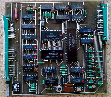 Čítač 0 je na desce UDR-1 /D3B/ zapojen jako dělič vstupní frekvence 2 MHz /Φ2/, Jeho výstup je veden do vstupu čítače 1. Čítač 1 pracuje jako prostý čítač /v modu 0/ nebo dělič /mód 2 a 3/ a jeho výstup je zapojen na přerušovací systém desky, Změní-li se výstup čítače 1 z "0" na "1" nastaví se klopný obvod přerušení D3B/8 = 1 /pouze je-li přerušeni povoleno PC5 = 1/. Pomoci čítače 0 a 1 je tedy možné realizovat hodiny reálného času - to znamená periodické přerušování.