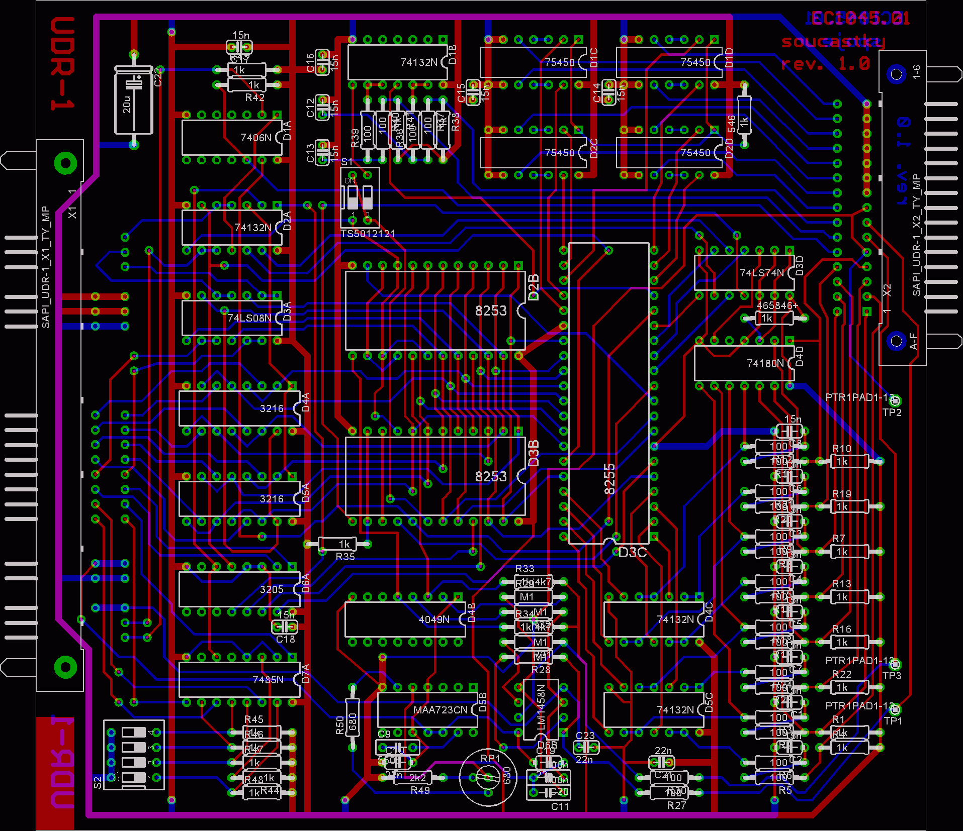 Univerzální deska řízení UDR-1 je vhodná pro malé aplikace systému SAPI-1 Je adresovaná jako vstup/výstupní zařízeni. Obsahuje tyto funkční bloky: