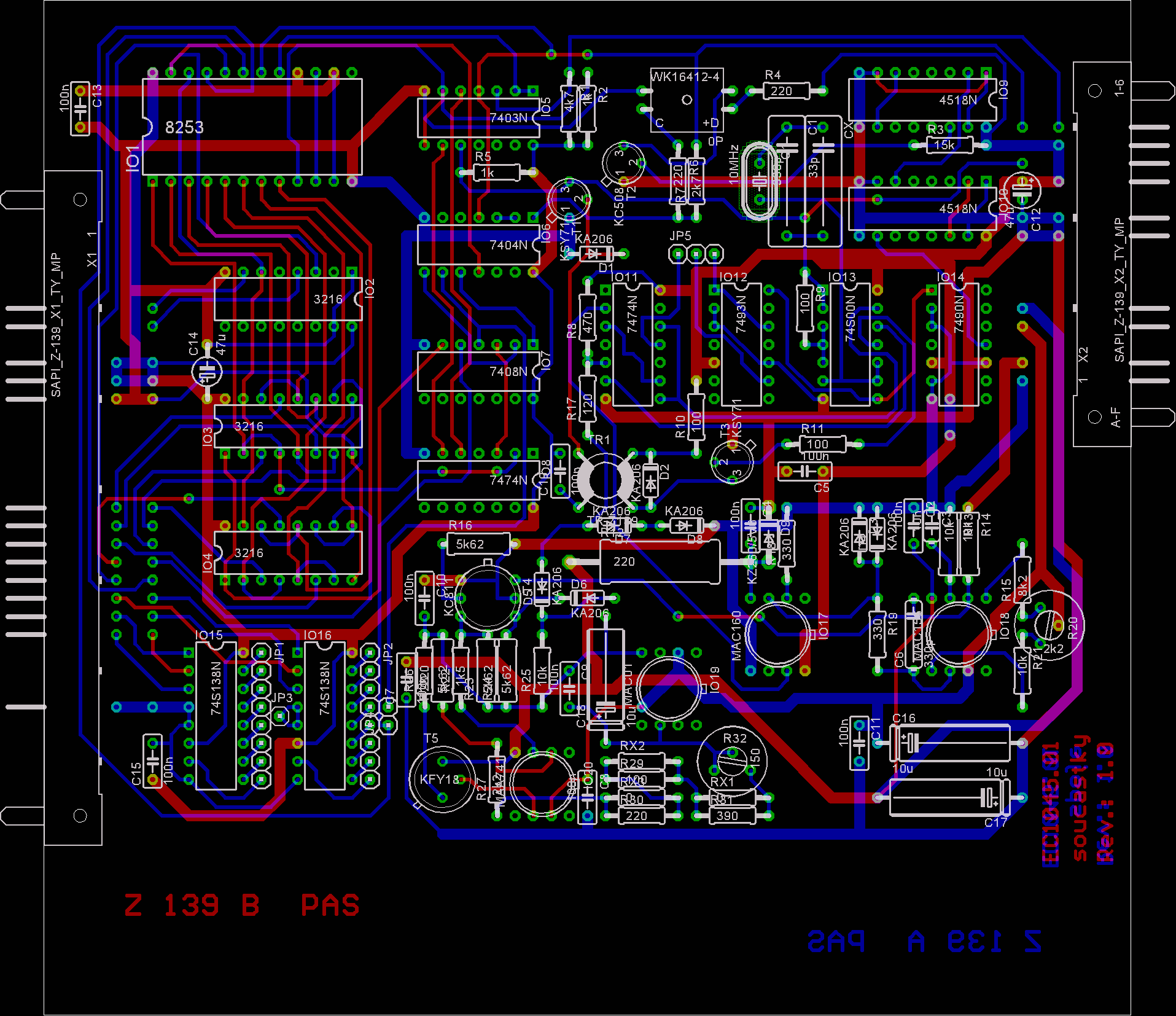 Deska PS Z-139, pohled se strany součástek