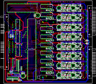Deska jde adresovat v celém adresném prostoru, kdy zabírá 12 adres s krokem 4 adres v jednom z osmi 32 bitových segmentech.
