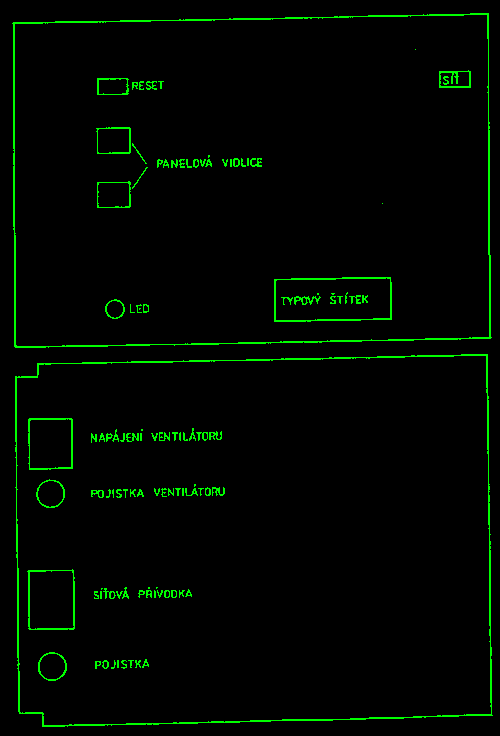 Na zadní stěně zdroje je umístěna zásuvka sloužící pro napájení ventilátoru sestavy. Na tuto zásuvku je přivedeno sítové napětí 220 V přes samostatnou pojistku. Zásuvka je spínána společně s napájecím zdrojem, sítovým vypínačem.