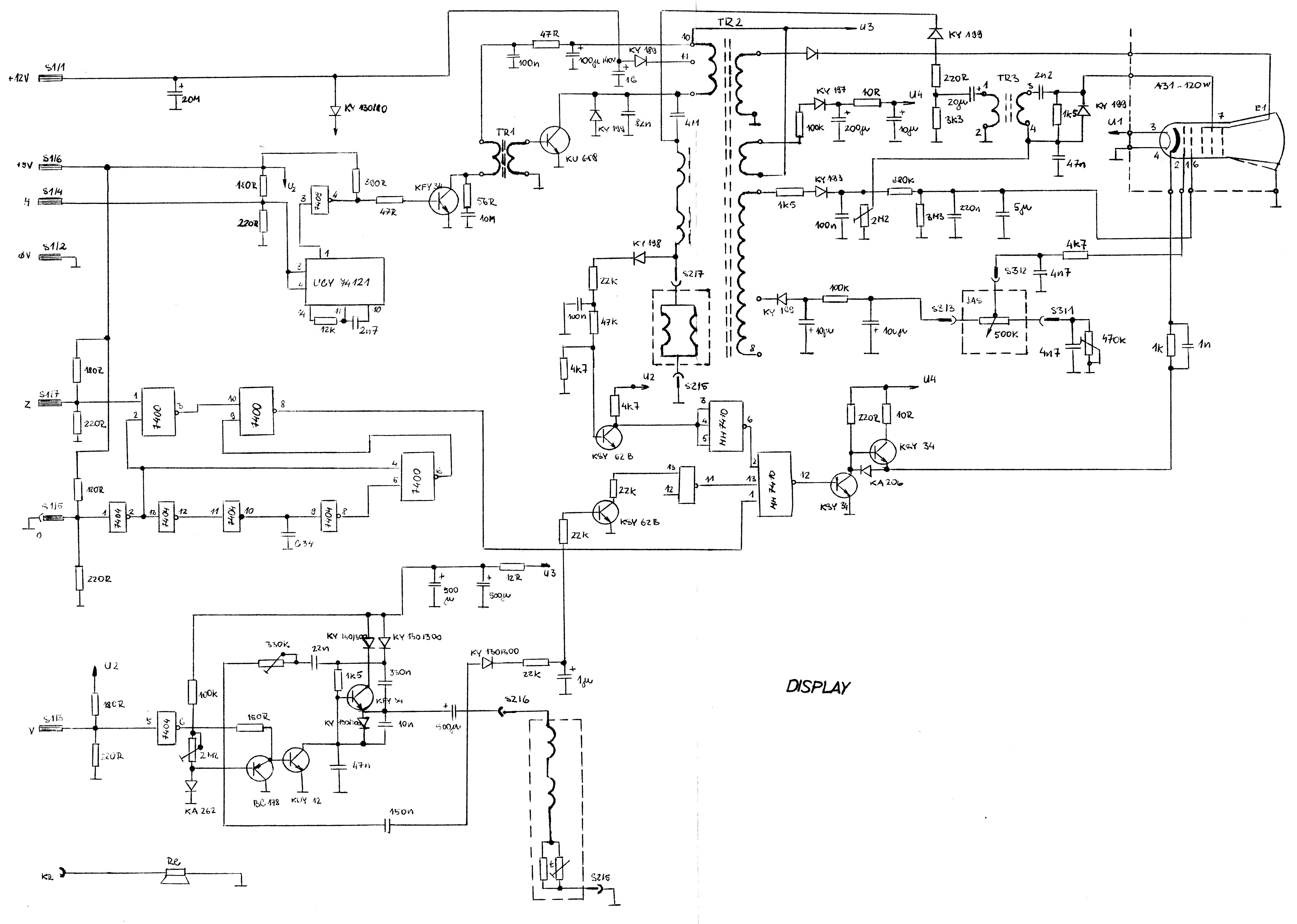 V stolnom počítači je použitý bežný display, ktorý vyrába TESLA NIŽNÁ s tým, že sa upravil pre naše podmienky. Do horizontálneho obvodu je prevedená úprava časovacieho obvodu UCY 74 121 pre riadkovú frekvenciu.