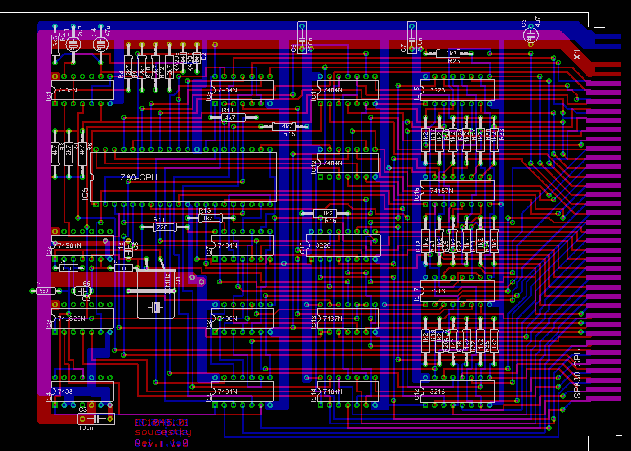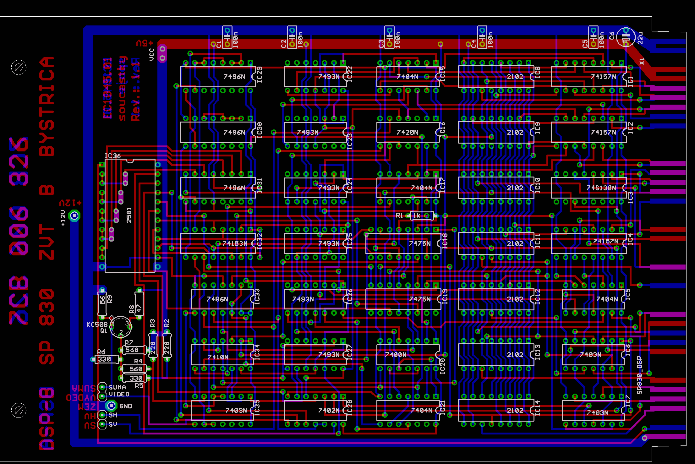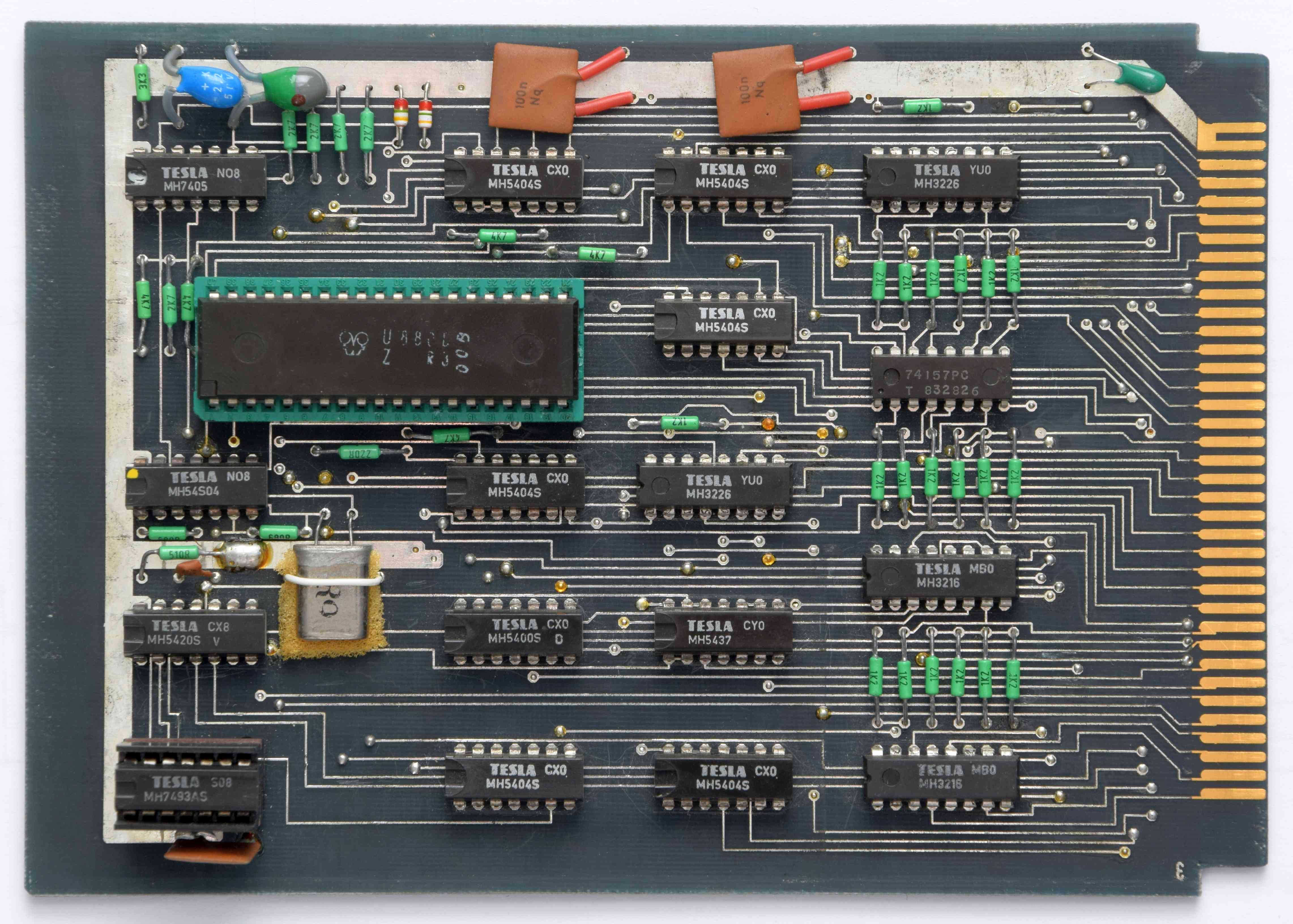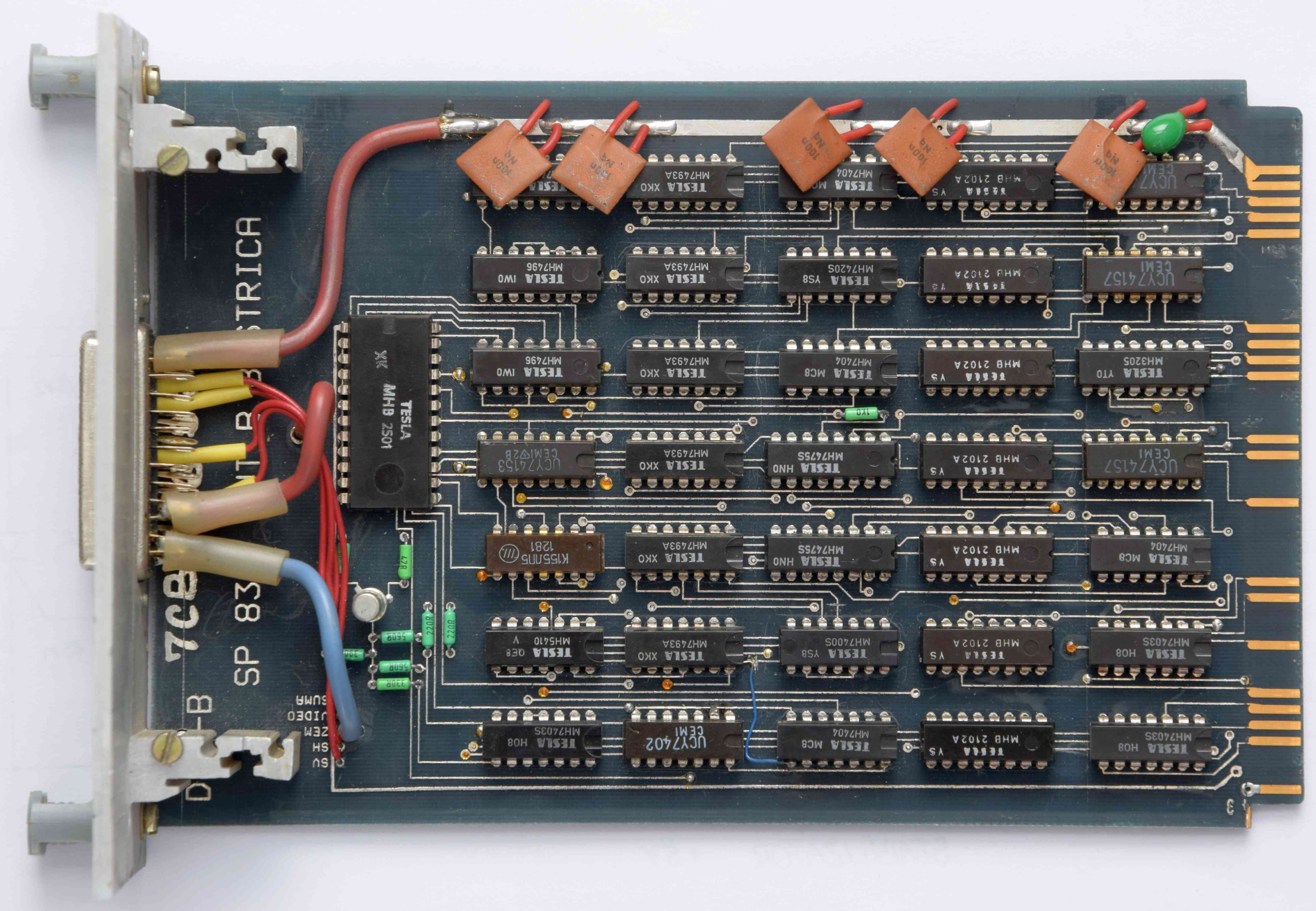 Doska plošného spoj a pripojenia displaya je osadená znova najmodernejšími súčiastkami československej výroby a RVHP. V doske sú použité integrované obvody rady MHB 2102, ktoré sú ako 2kB pamäť.
