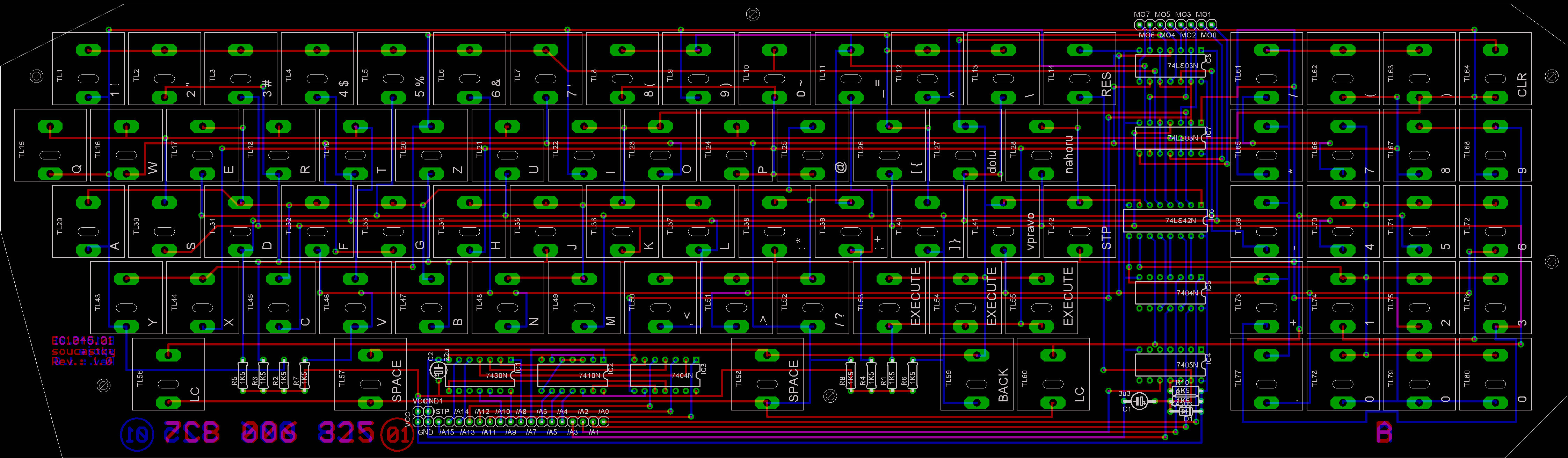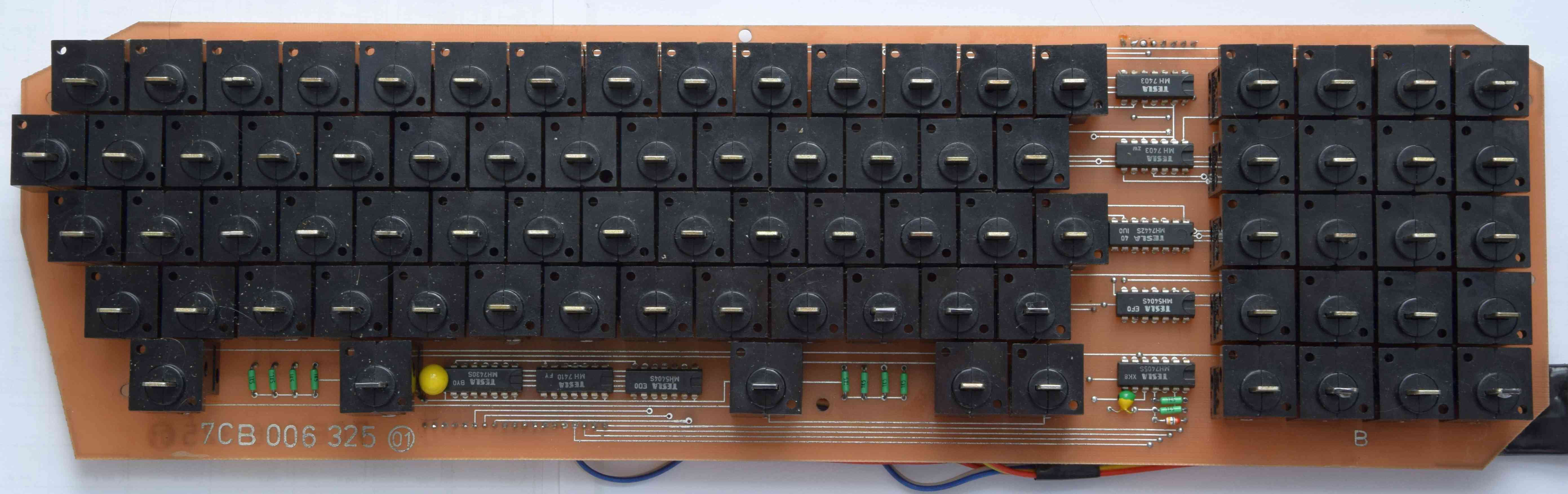 Doska plošného spoja klávesnice je osadená 80 mikrospínačmi typu B 614. Hmatníky sú popísané jednotlivými znakmi, písmenami pre ovládanie počítača z klávesnice, alebo pre ovládanie jednotlivých periférií. Samotná klávesnica sa chová ako pamäť RAM. Doska klávesnice je pripojená k základnej zostave káblom.