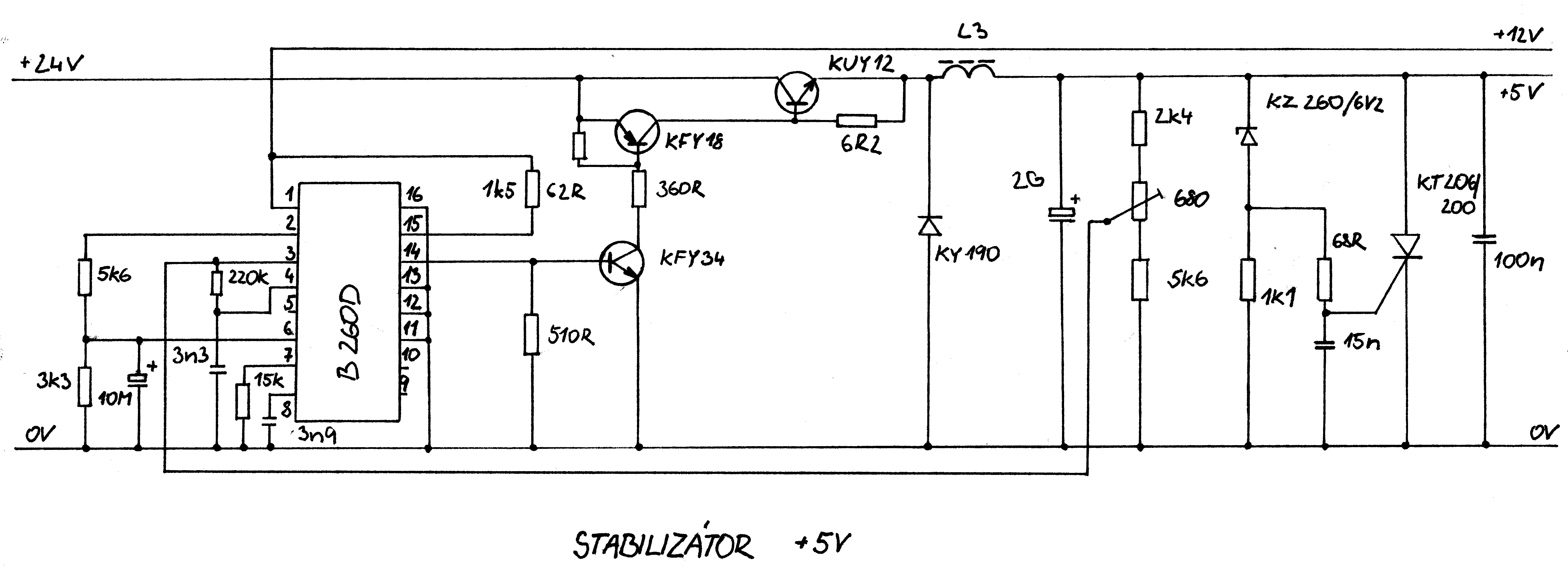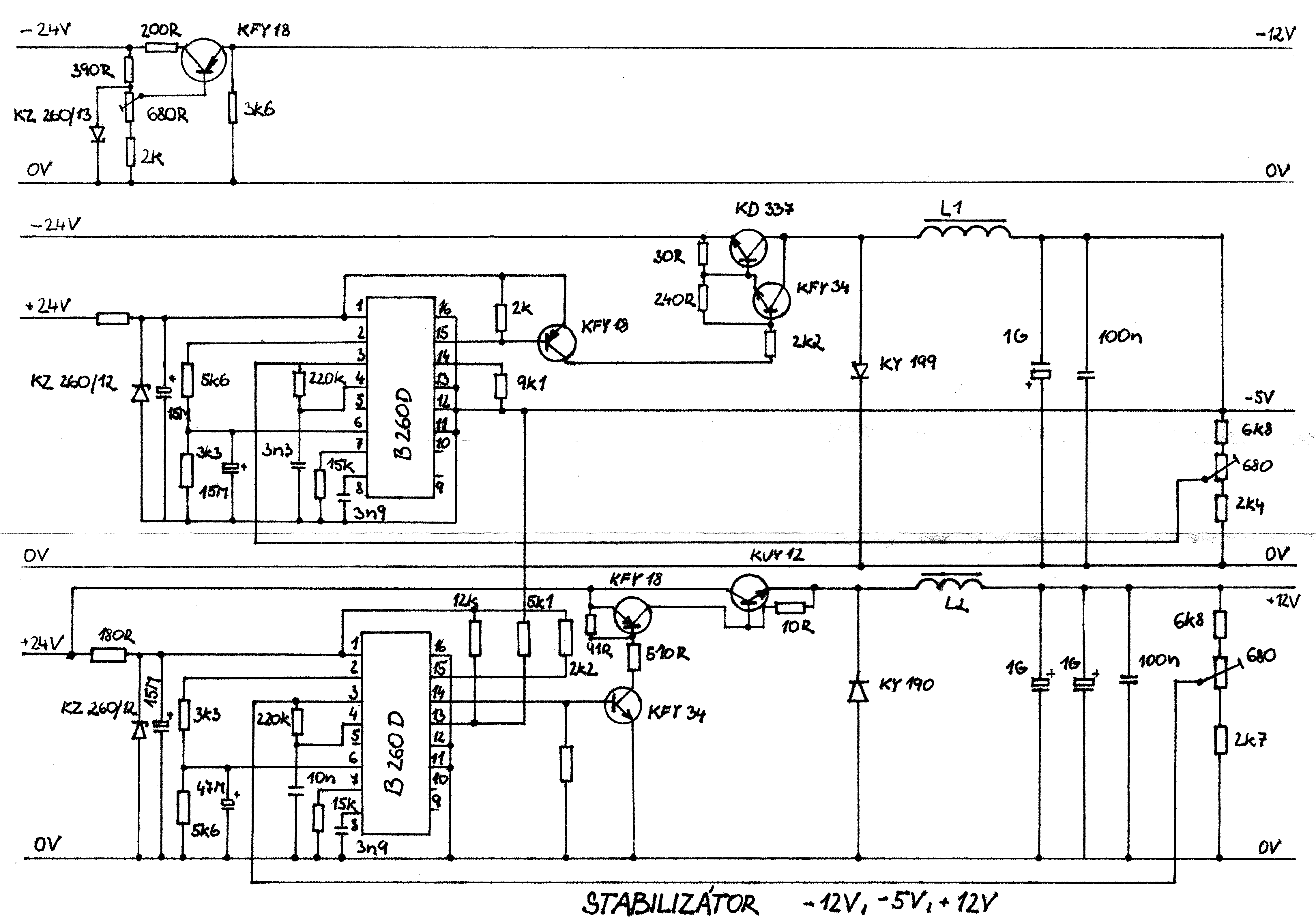 schéma Stabilizátor -12V, -5V, +12V