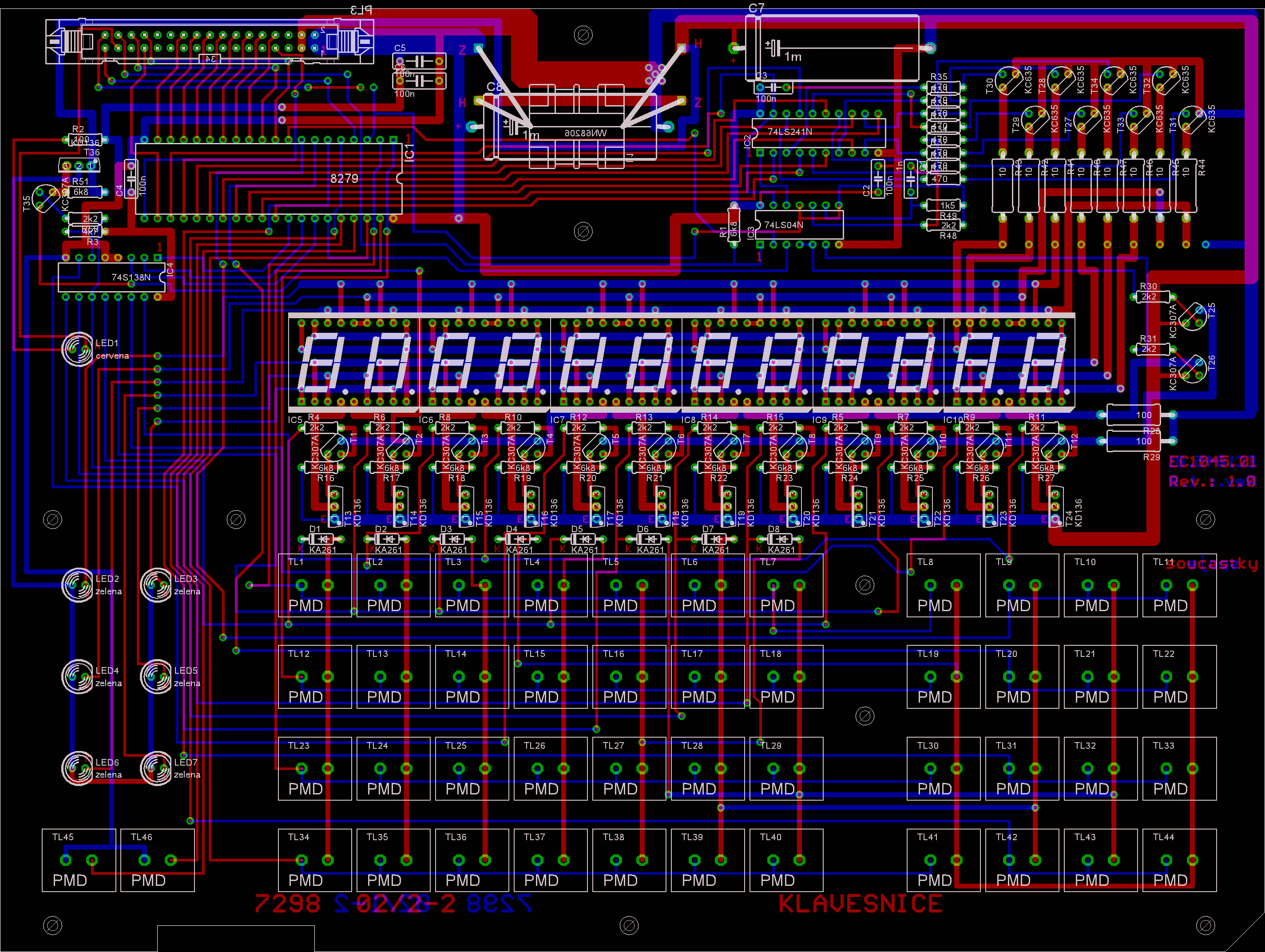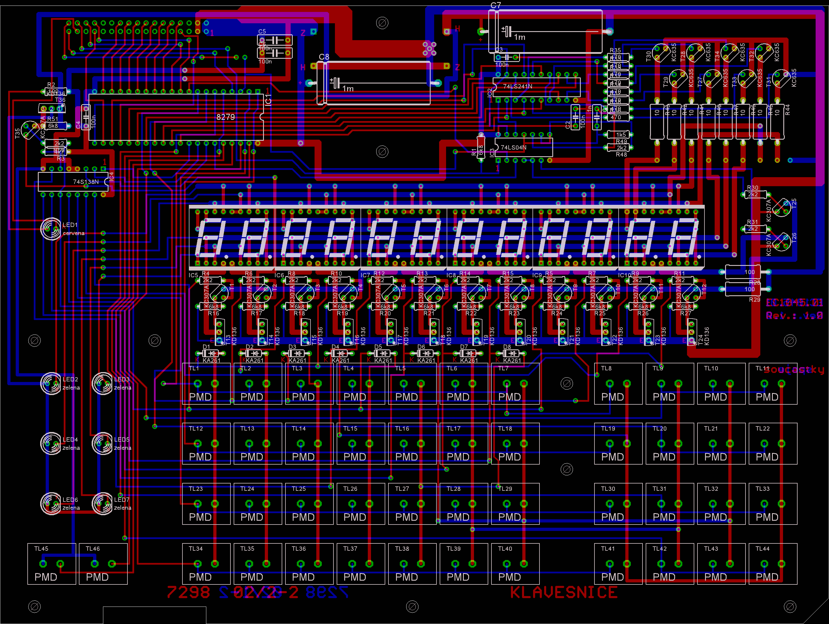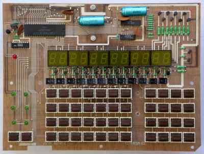 Displej s klávesnicí je katalogové zapojení obvodu 8279. Displej s klávesnicí pochází z integrátoru CI-105 z produkce LP Praha. Získáno jako torzo.