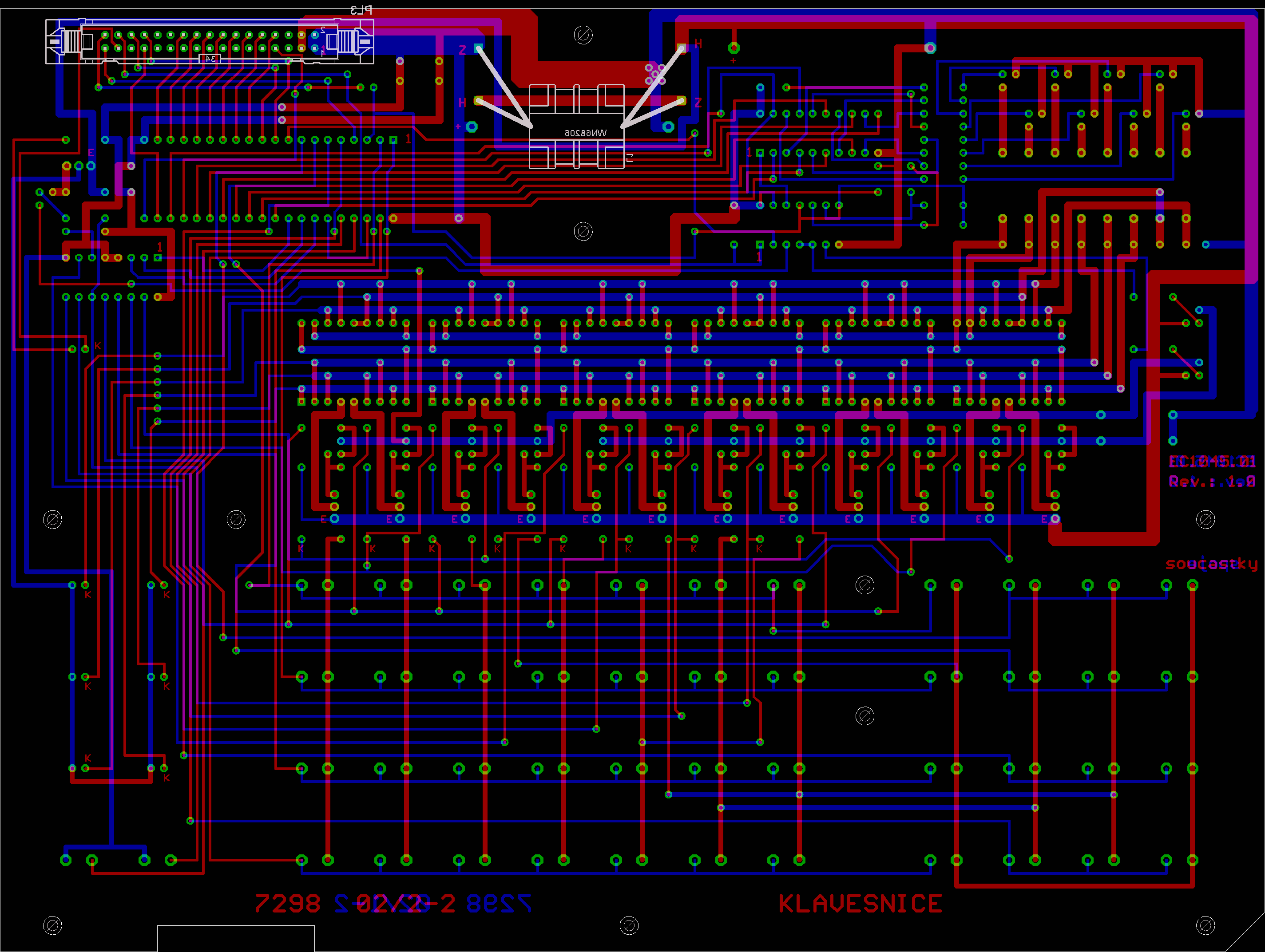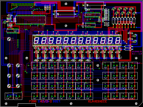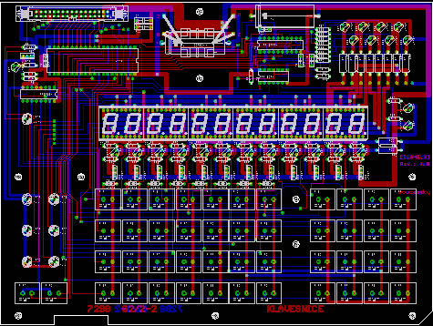 Výkres osazení 12 místného 7 segmentového displeje s klávesnicí 7298, strana spojů