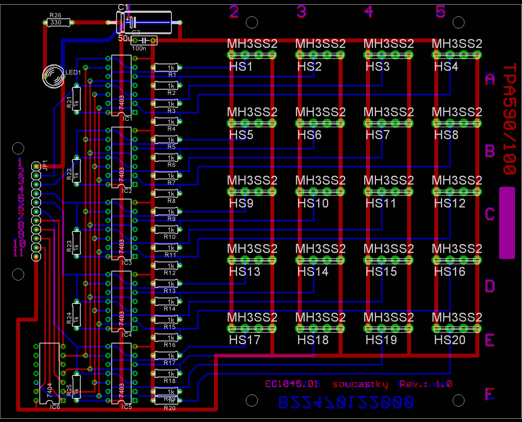 Výkres osazení matice kláves 4x5 s MH3SS2 5x4 s MH1SS1